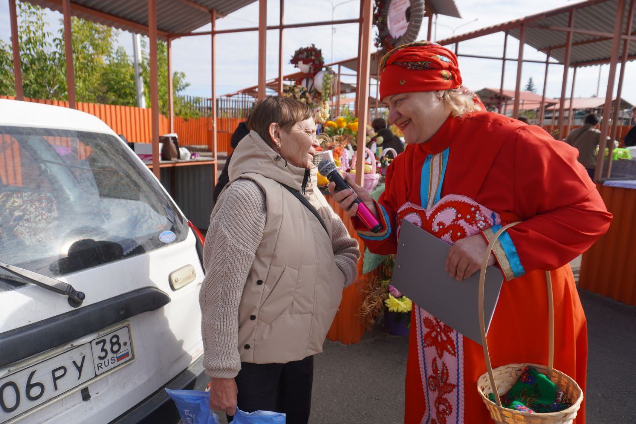 Ведущая ярмарочного праздника Матрёна Ивановна весело и задорно открыла ярмарку и вместе с Советом женщин посёлка Куйтун провела бесплатную лотерею для гостей ярмарки.