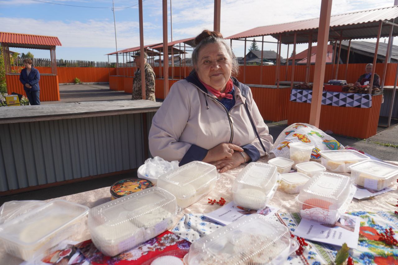 Здесь на ярмарке было представлено огромное количество вкуснейших продуктов: от овощей и молочной продукции до свежей рыбы и мяса. При входе на ярмарку всех гостей встречали участницы Совета женщин р. п. Куйтун. Они вручали лотерейные билеты первым посетителям. А народный хор "Русская песня" "Социально- культурного центра Кадинский" вместе с руководителем Николаем Соклаковым веселил песнями посетителей ярмарки.
