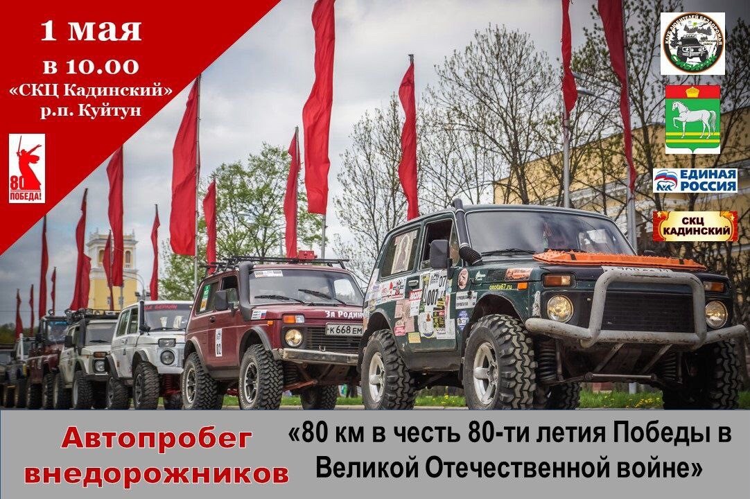 местное отделение партии " Единая Россия" ПРИГЛАШАЮТ жителей поселка Куйтун и Куйтунского района принять участие в АВТОПРОБЕГЕ ВНЕДОРОЖНИКОВ " 80 КМ В ЧЕСТЬ 80-ТИ ЛЕТИЯ ПОБЕДЫ В ВЕЛИКОЙ ОТЕЧЕСТВЕННОЙ ВОЙНЕ" (на автомобилях с колесной формулой 4*4)