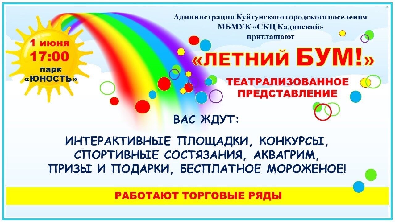 Мальчишки и девчонки, а также их родители, На праздник "ЛЕТНИЙ БУМ" Прийти к нам не хотите ли?