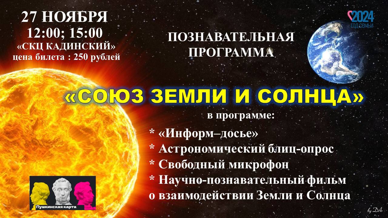 💥Дорогие друзья! Приглашаем Вас на Познавательную программу «СОЮЗ ЗЕМЛИ И СОЛНЦА».