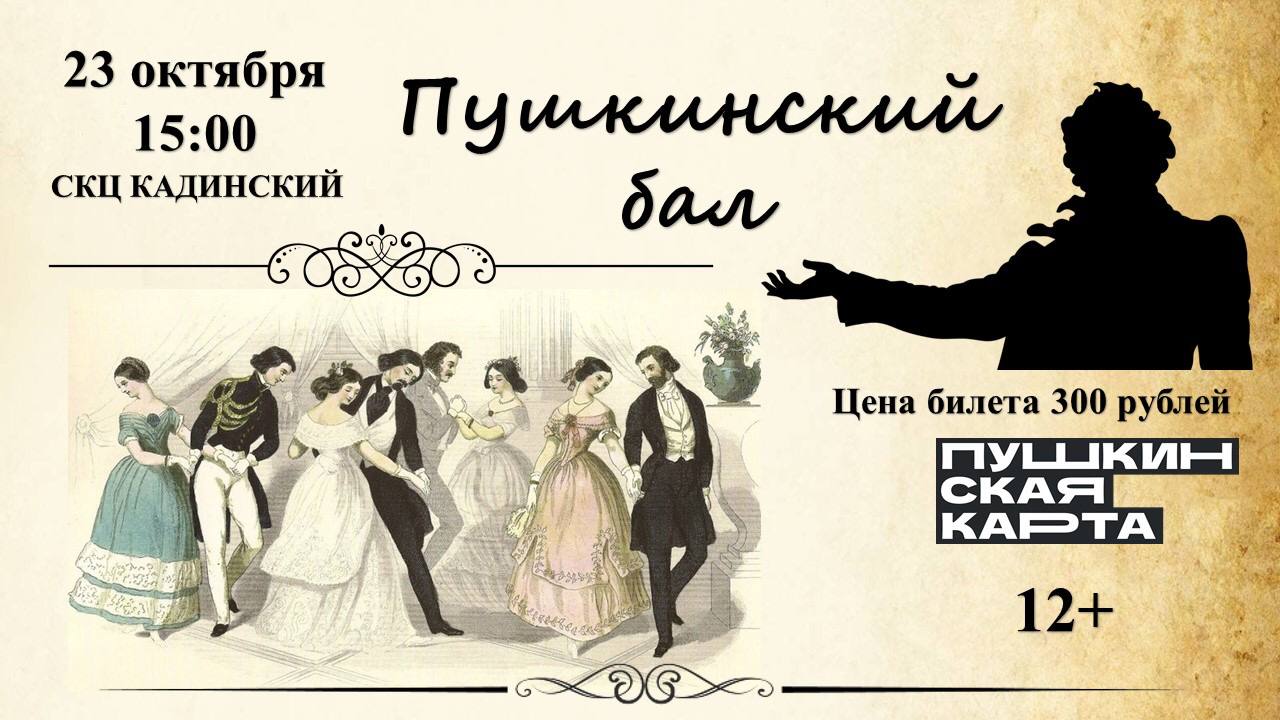 Дорогие друзья! «СКЦ Кадинский» приглашает Вас на Литературно-музыкальный вечер «ПУШКИНСКИЙ БАЛ» 23 октября в 15:00.