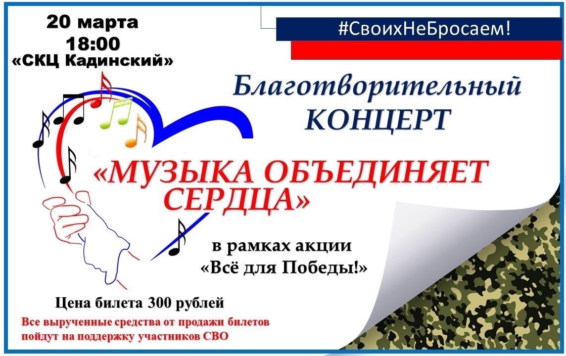 Уважаемые земляки! Приглашаем вас на БЛАГОТВОРИТЕЛЬНЫЙ КОНЦЕРТ "МУЗЫКА ОБЪЕДИНЯЕТ СЕРДЦА"![]()