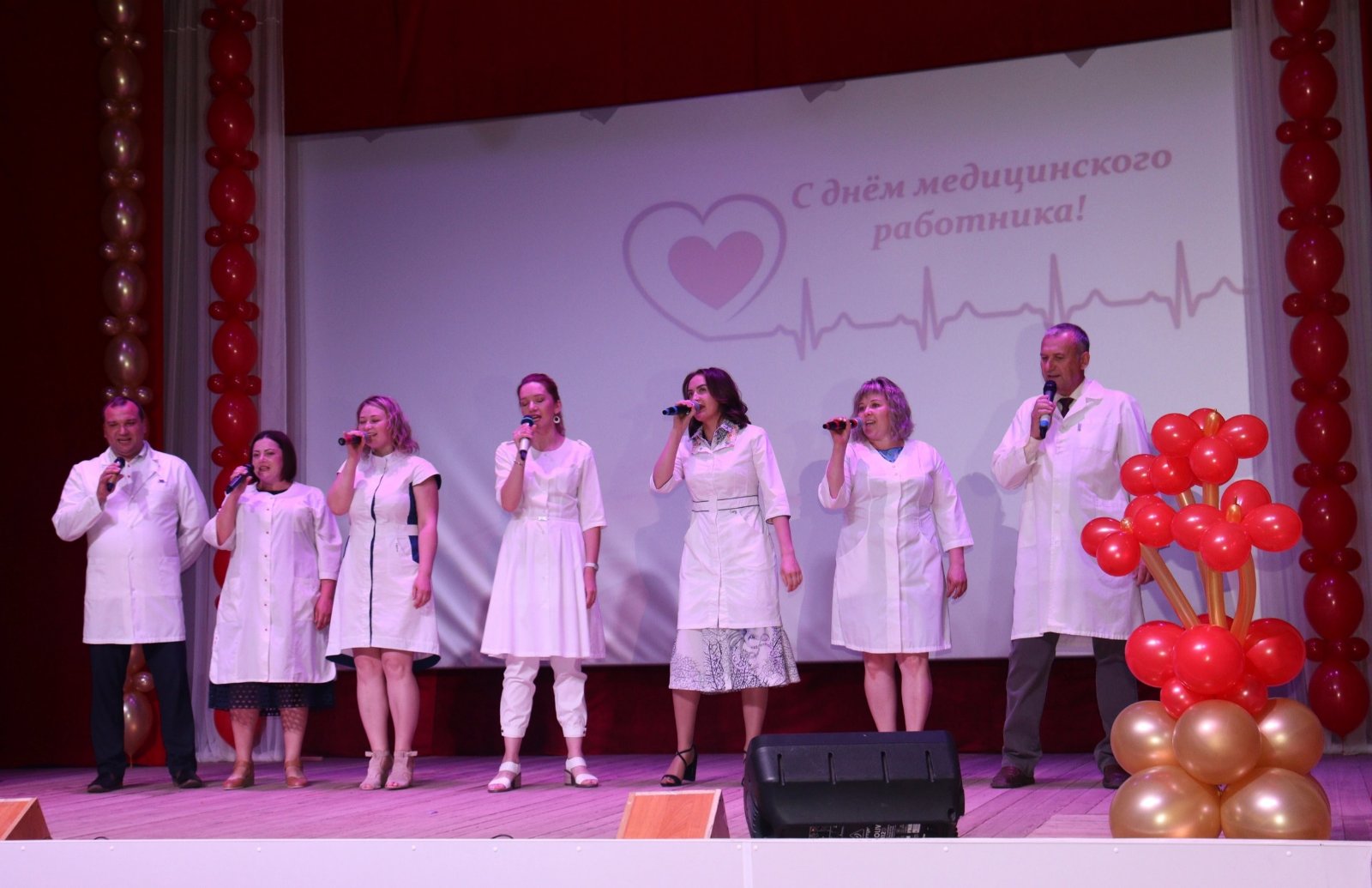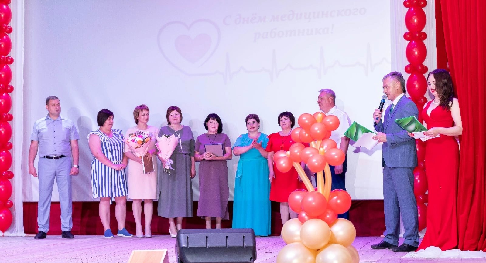 17 июня в зале МБМУК "СКЦ Кадинский" состоялось торжественное мероприятие, посвящённое Дню медицинского работника, в котором приняли участие врачи, фельдшеры, медсёстры, лаборанты, санитары и другие медицинские работники.
