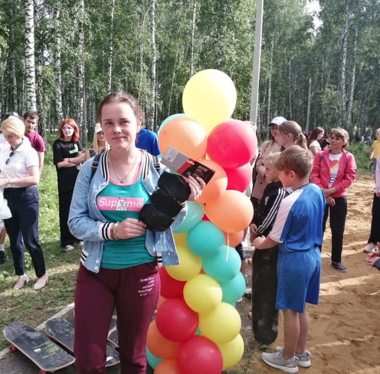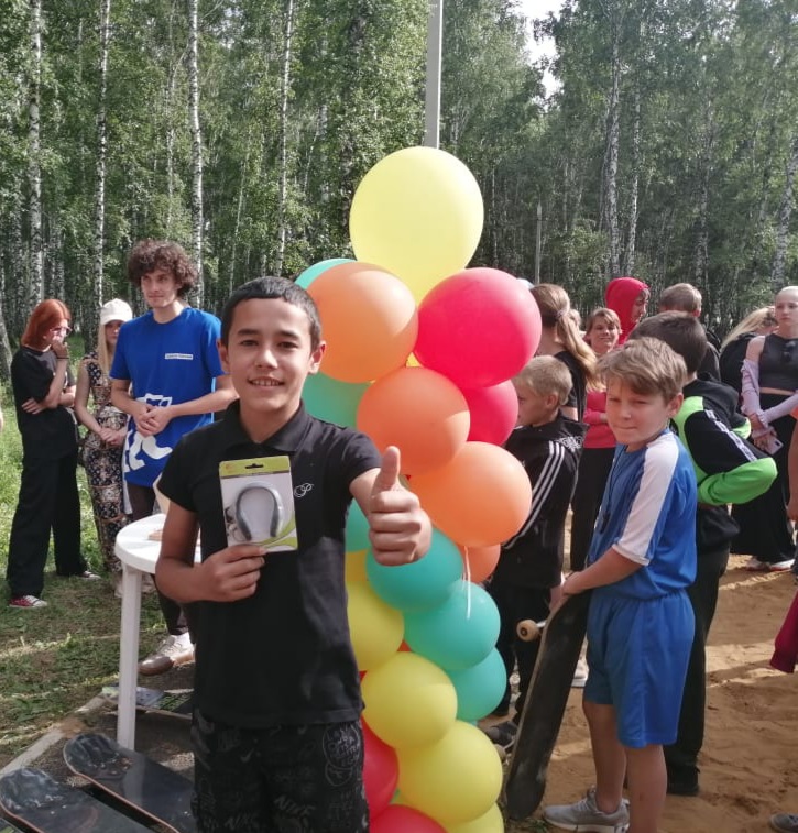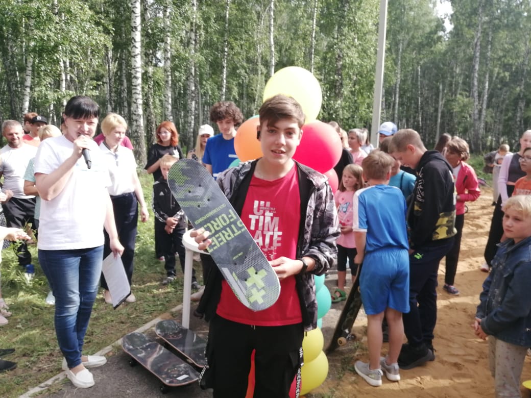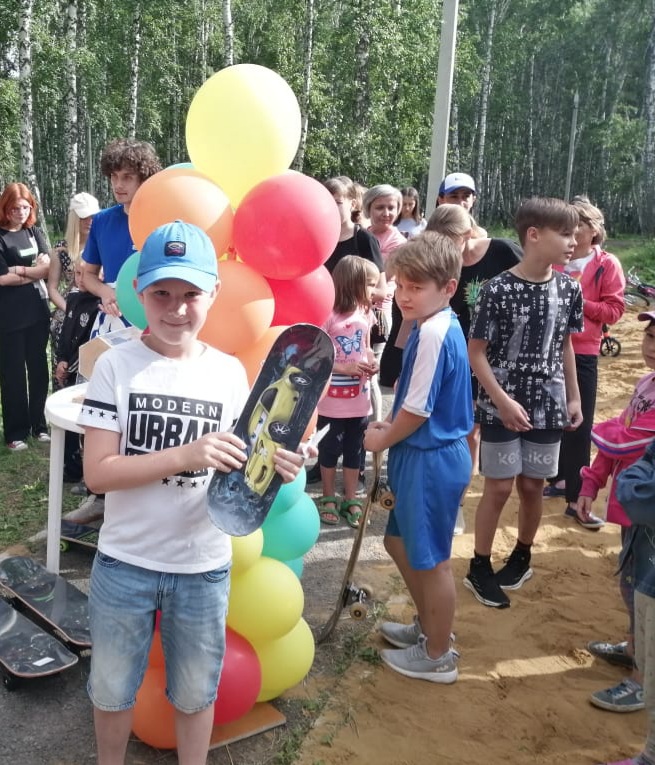 Вторым праздничным сюрпризом стал розыгрыш специальных призов для занятия скейтбордингом от магазина «Сеть Техники». После розыгрыша подарков все желающие смогли протестировать новую скейт-площадку. За ними наблюдали ребята помладше и довольные родители.