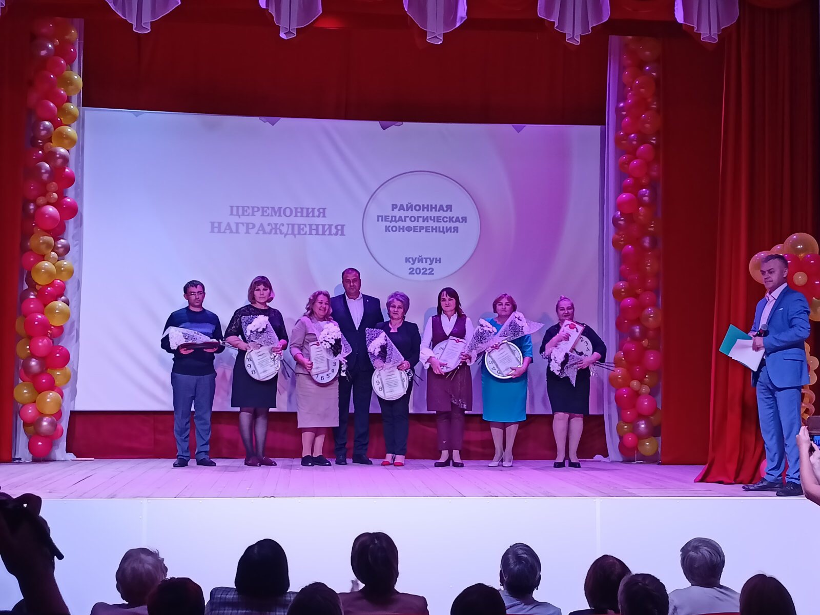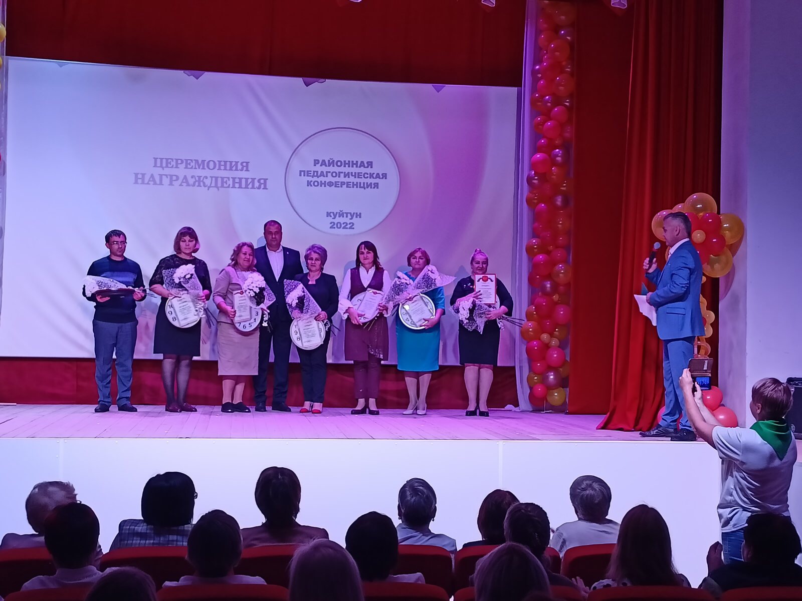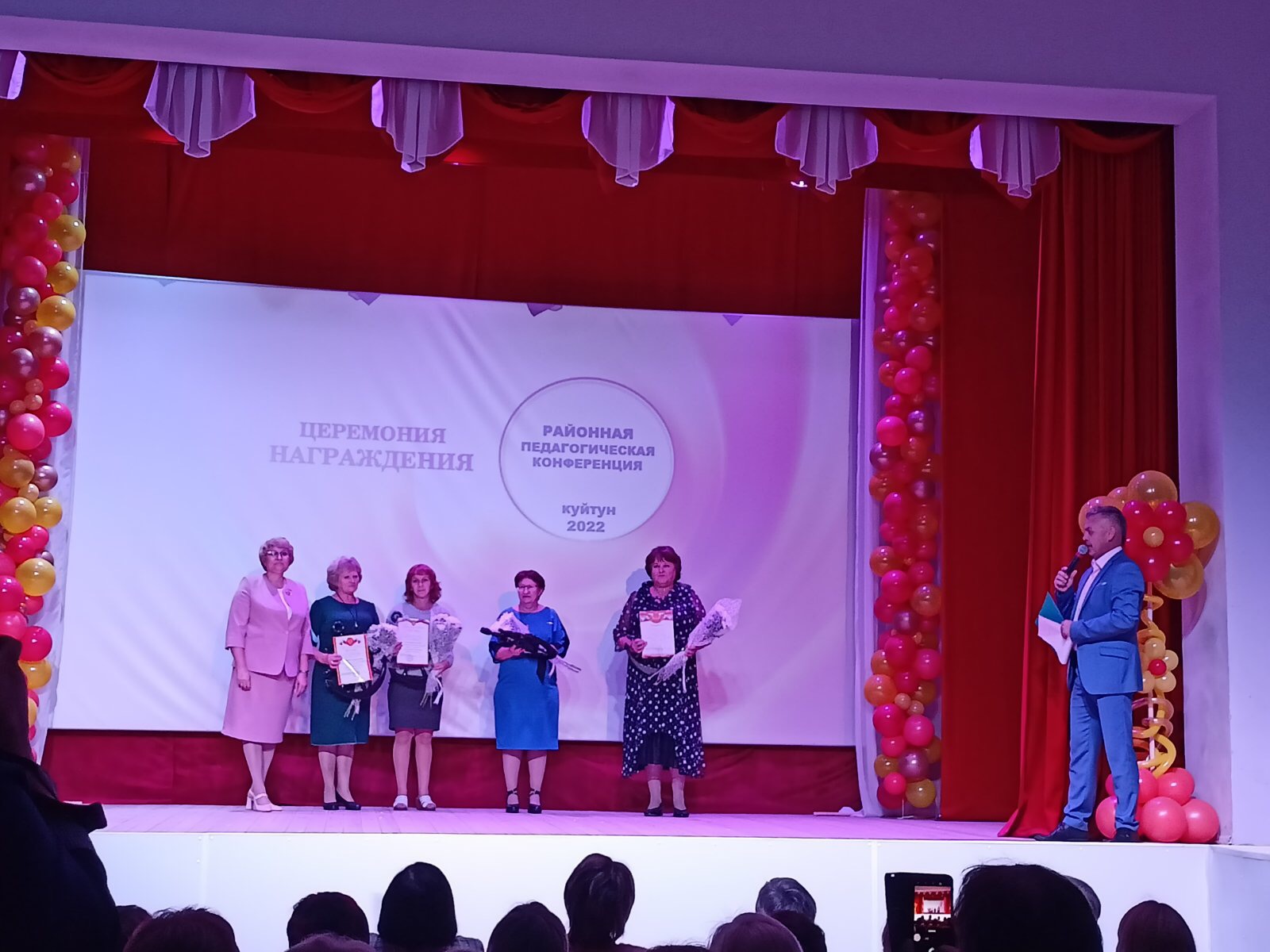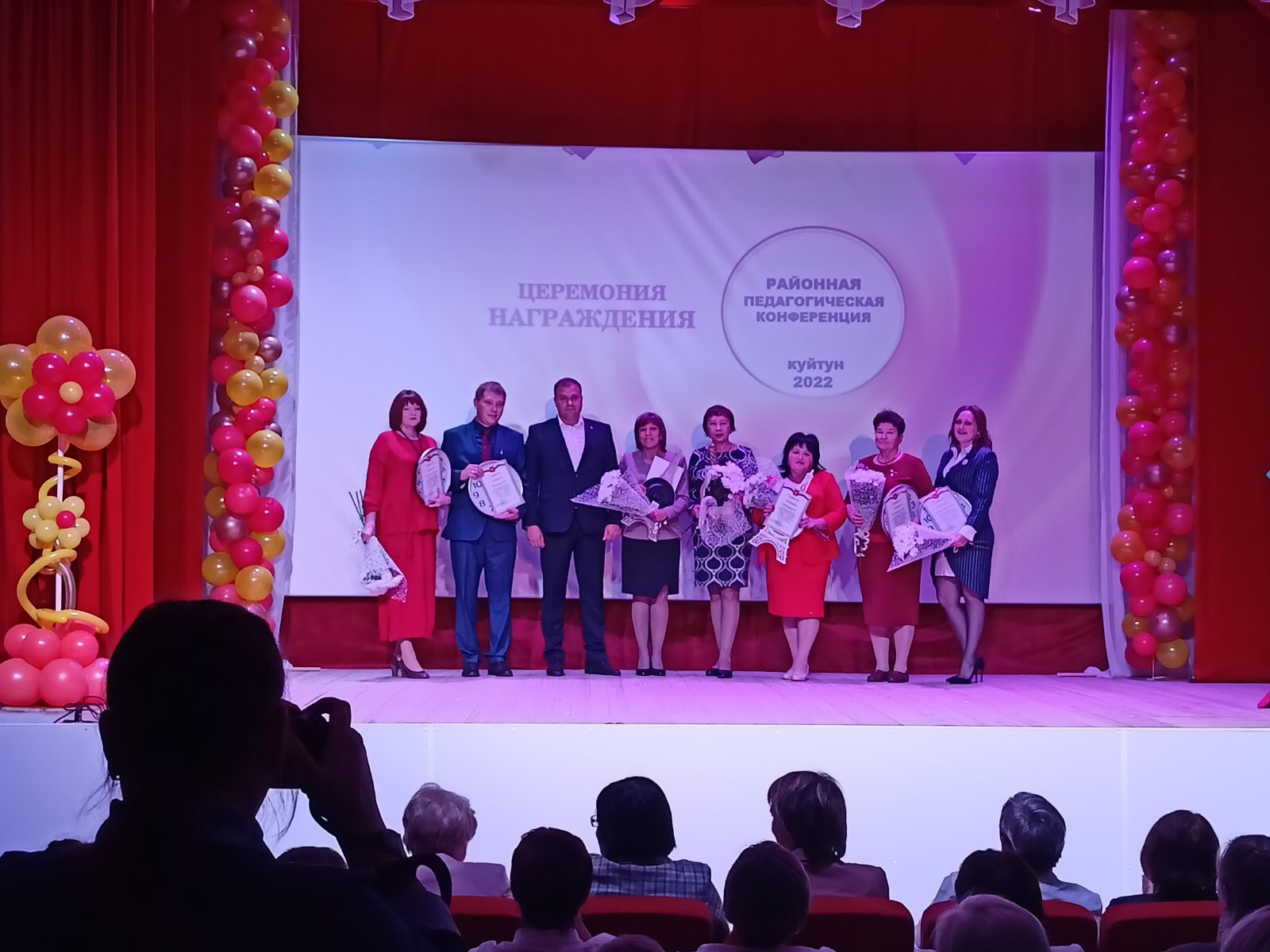 Мэр муниципального образования Куйтунский район Алексей Петрович Мари поприветствовал всех педагогов зале и вручил грамоты директорам общеобразовательных учреждений и заведующим дошкольных учреждений Куйтунского района за высокие образовательные результаты, организацию учебной и воспитательной работы по итогам 2021-2022 учебного года и за подготовку образовательной организации к новому учебному 2022-2023 учебному году.