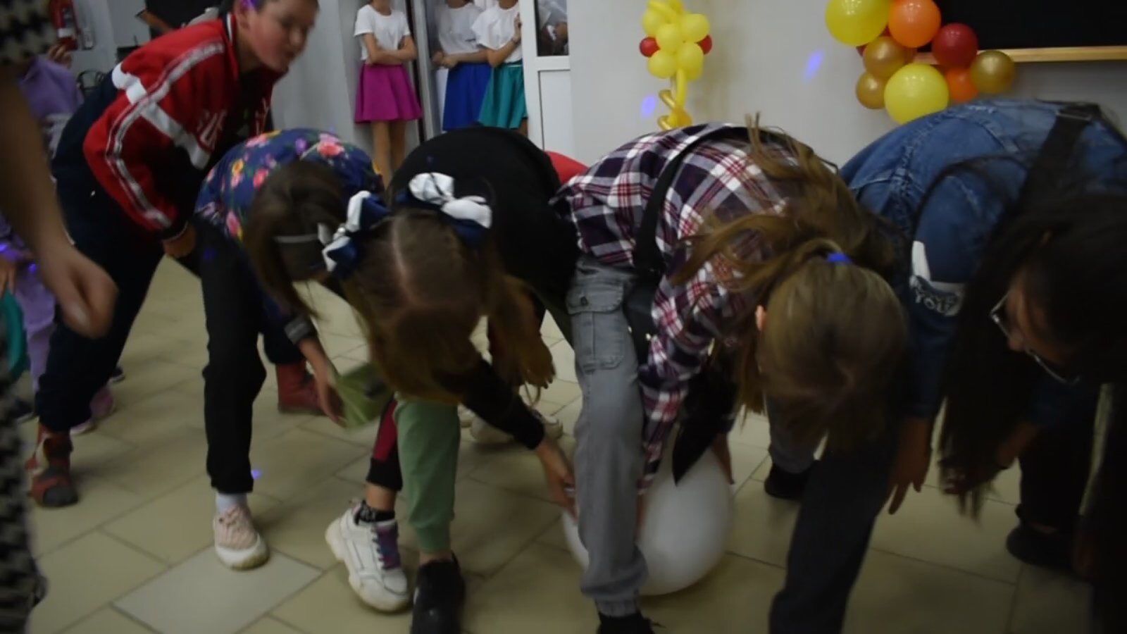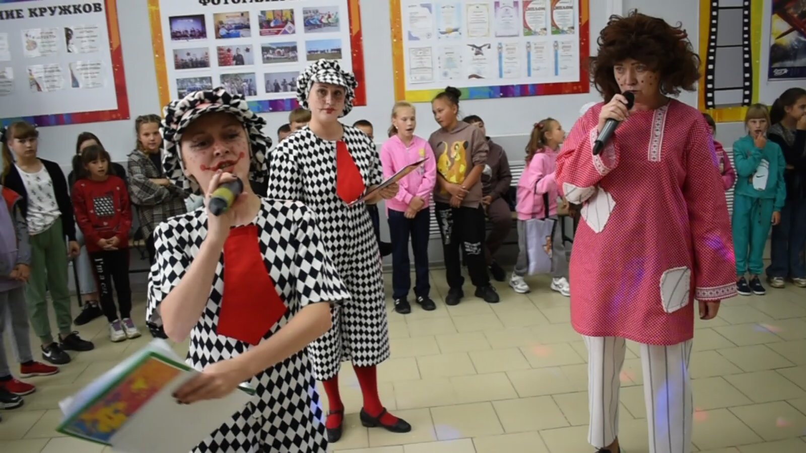 Большой зал, заполненный маленькими школьниками, громко встретил задорных, ярких клоунов, которые начали свое праздничное развлечение.