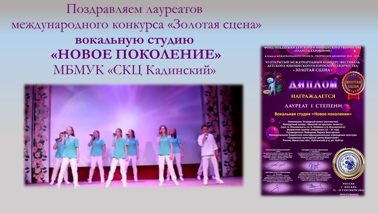 ПОЗДРАВЛЯЕМ ЛАУРЕАТОВ МЕЖДУНАРОДНОГО КОНКУРСА "ЗОЛОТАЯ СЦЕНА". 27.09.2022