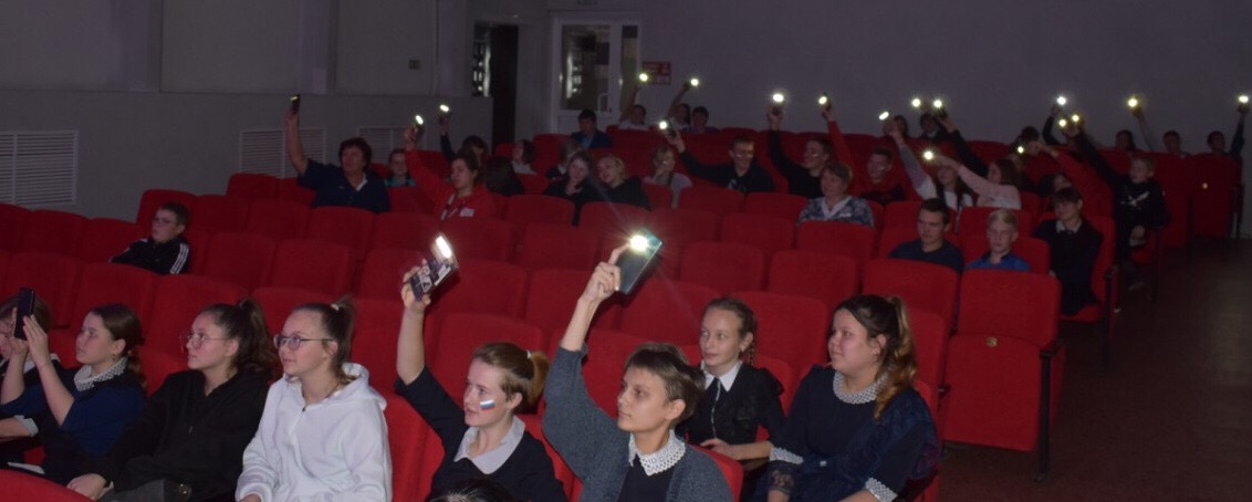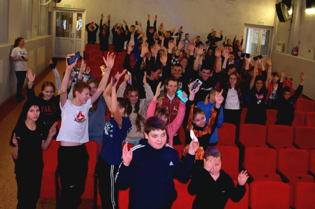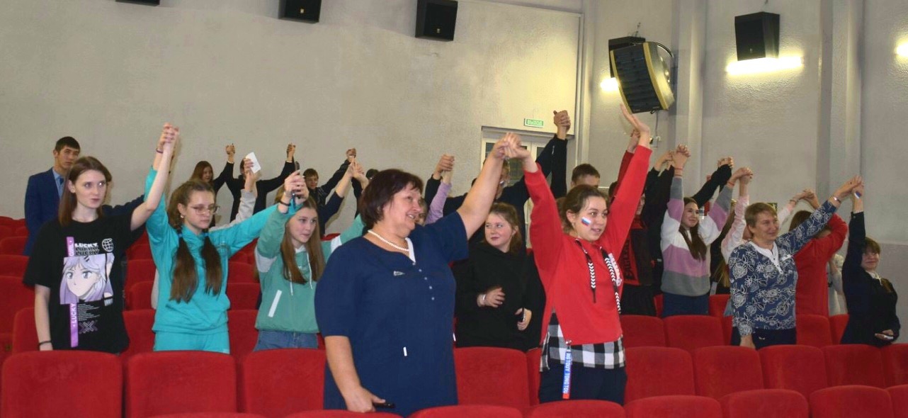 Перед просмотром военно-драматического фильма участники программы взялись за руки и все дружно произнесли главную фразу встречи: «Я – патриот Страны Великой!».