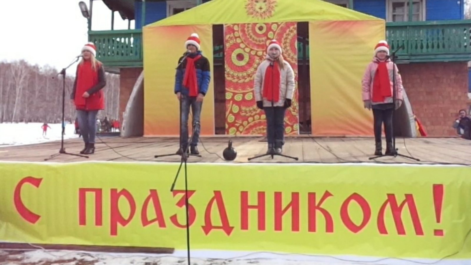 Большое количество людей — от мала до велика — собралось на стадионе. Организаторы праздника приложили немало усилий, чтобы проводы зимы прошли на славу. Участники театральной студии "АРТист" "Социально-культурного центра Кадинский" весело начали праздник.