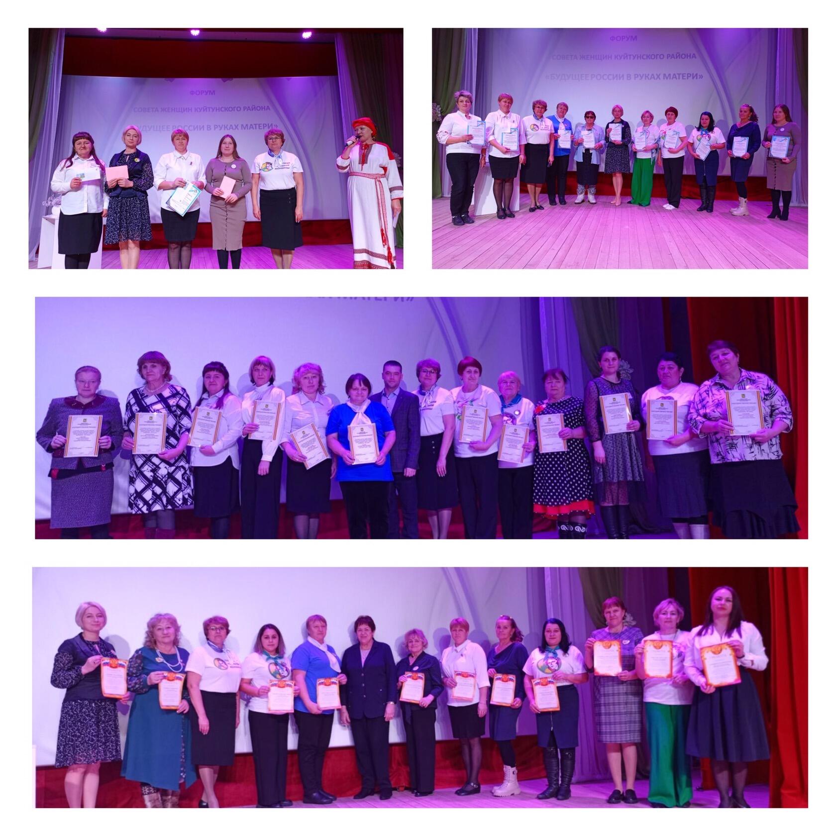 На форуме были вручены грамоты и благодарности от Председателя областного Совета женщин Иркутского регионального отделения Союза женщин Галины Николаевны Терентьевой, мэра муниципального образования Куйтунский район Алексея Анатольевича Непомнящего и Председателя Совета женщин Куйтунского района Алёны Олеговны Якубчик. «Благополучия Вам, успехов и везения! Побольше интересных идей и плодотворного их воплощения» - пожелал ведущий Антон Григорьев «СКЦ Кадинский».