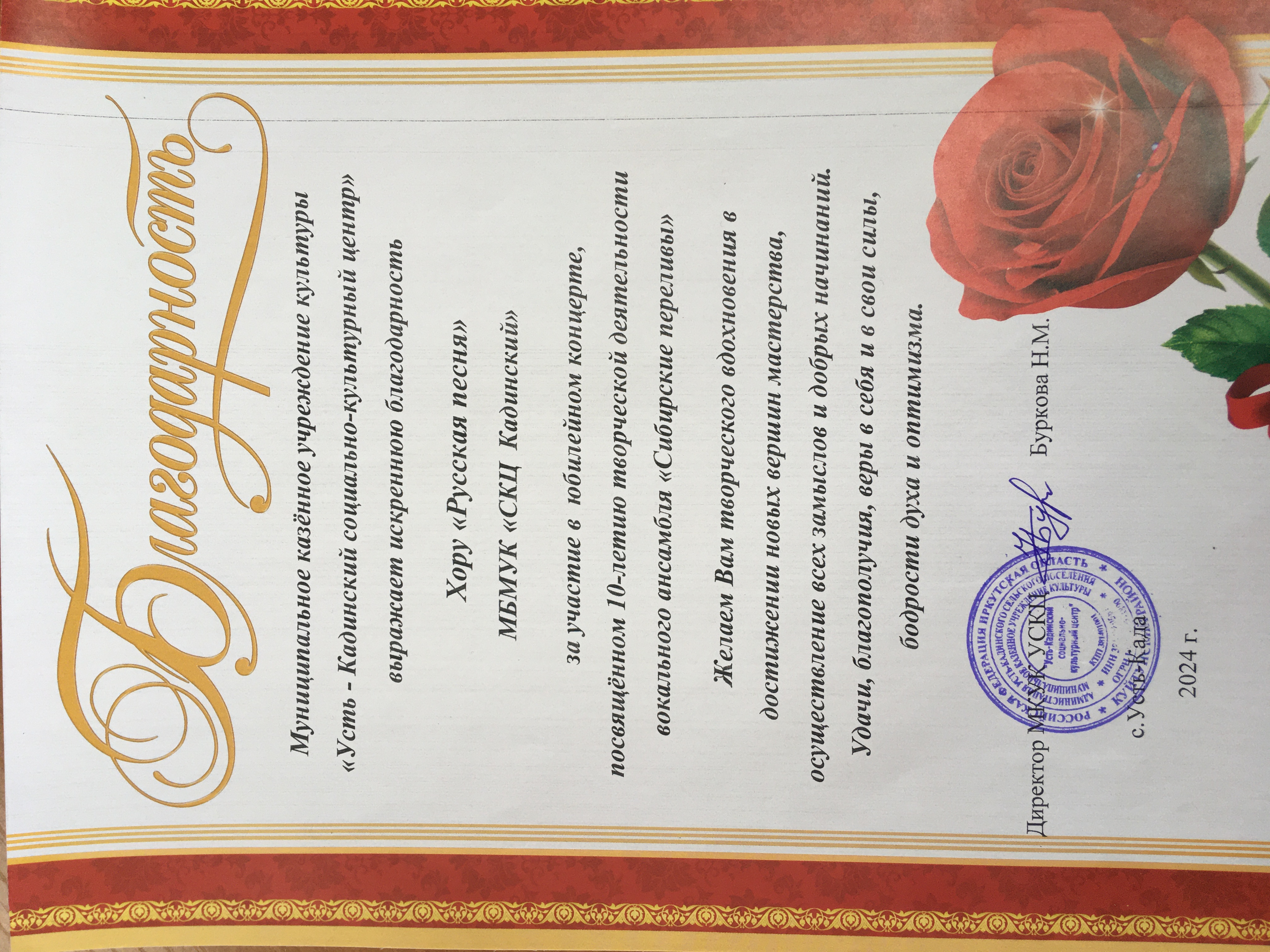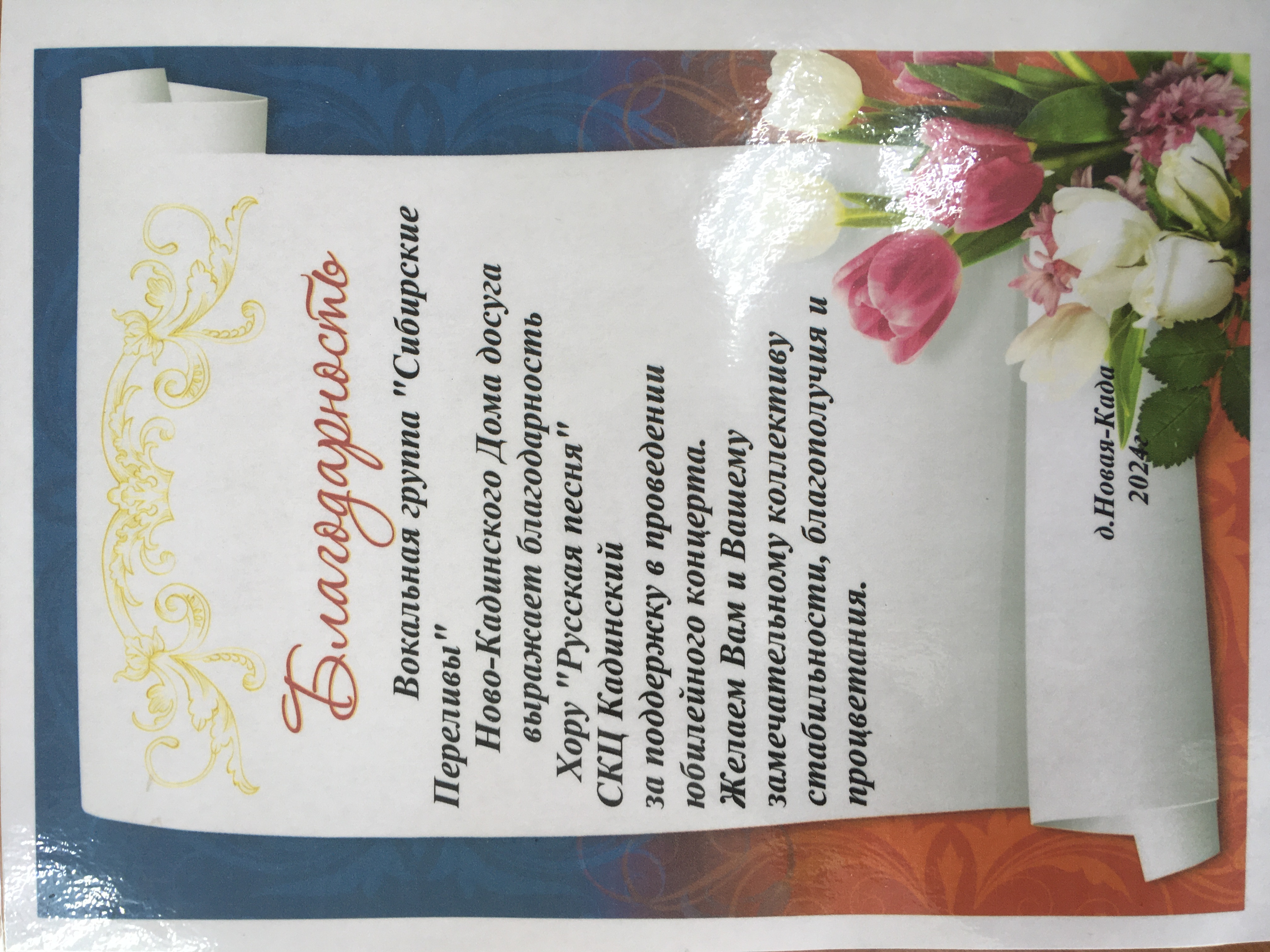 Народный хор "Русская песня" "Социально-культурного центра Кадинский" принял участие в юбилейном концерте, посвященном 10-летию творческой деятельности вокального ансамбля "Сибирские переливы"