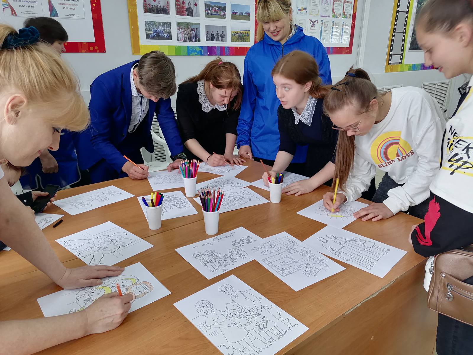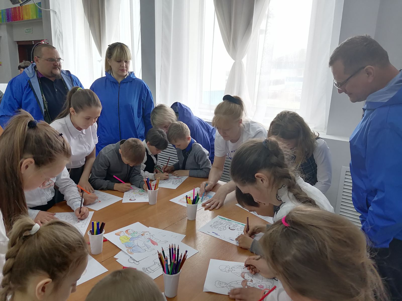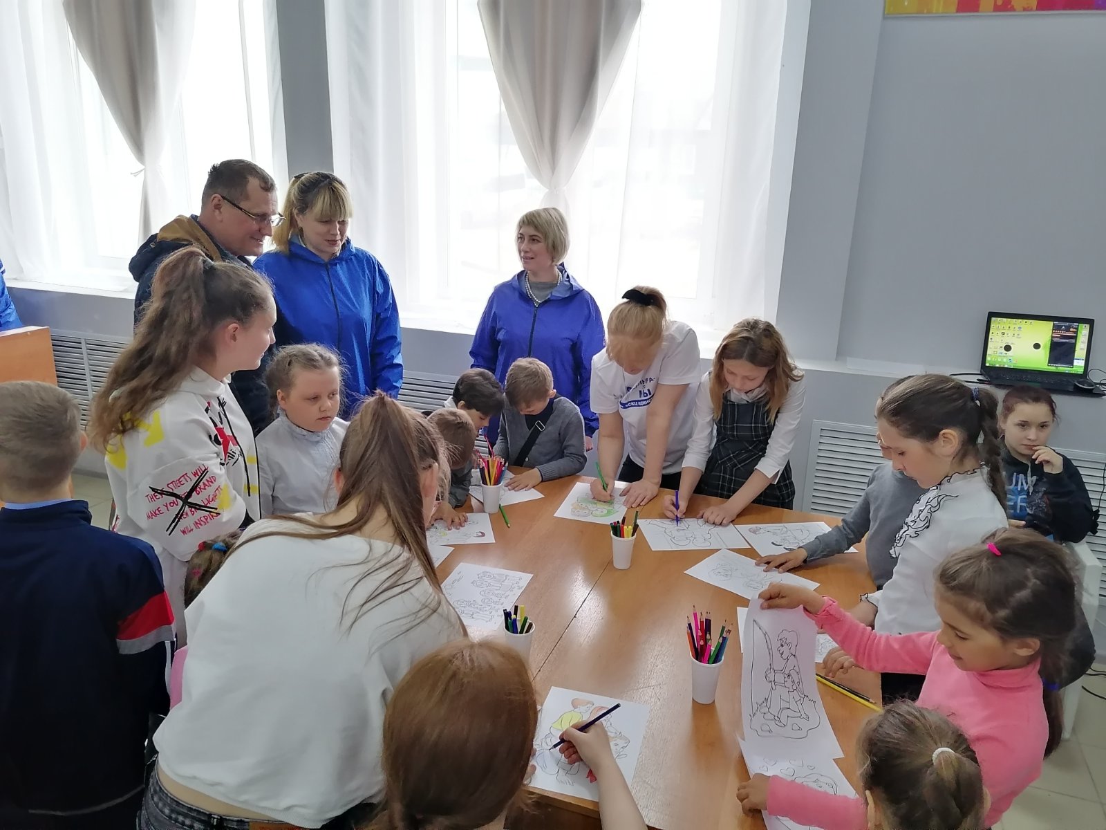 Организаторы акции, предлагали посетителям учреждения выбрать рисунок о семье и раскрасить его. Под песню "ДА ЗДРАВСТВУЕТ СЕМЬЯ!" дети и взрослые с огромным желанием и интересом подбирали карандаши и фломастеры, чтобы сделать добрые рисунки о семье яркими и радостными.