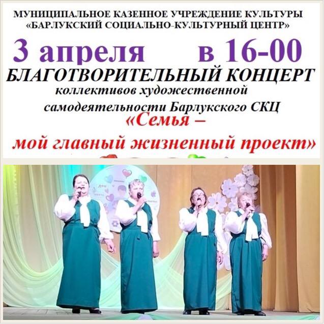 3 апреля к акции «Все для Победы!» присоединились жители села Барлук и провели Благотворительный концерт «Семья-мой главный жизненный проект» на территории Барлукского поселения. В Благотворительном концерте по сбору средств для участников СВО приняли участие артисты «Барлукского СКЦ», а также из близлежайших поселений- села Бурук и поселка Окинск.