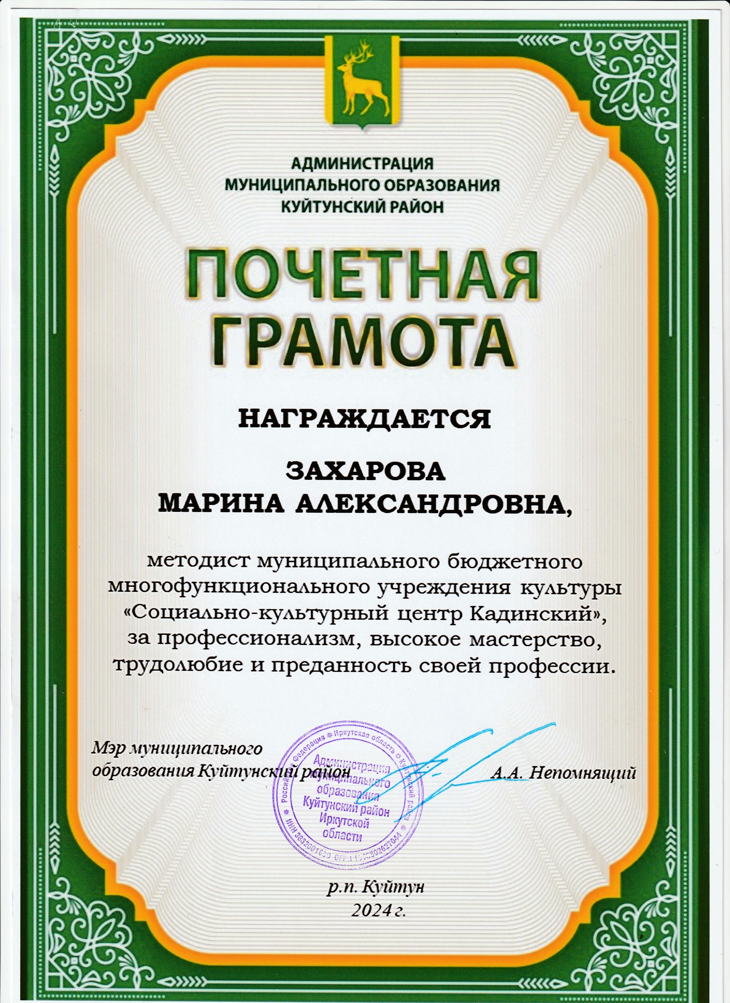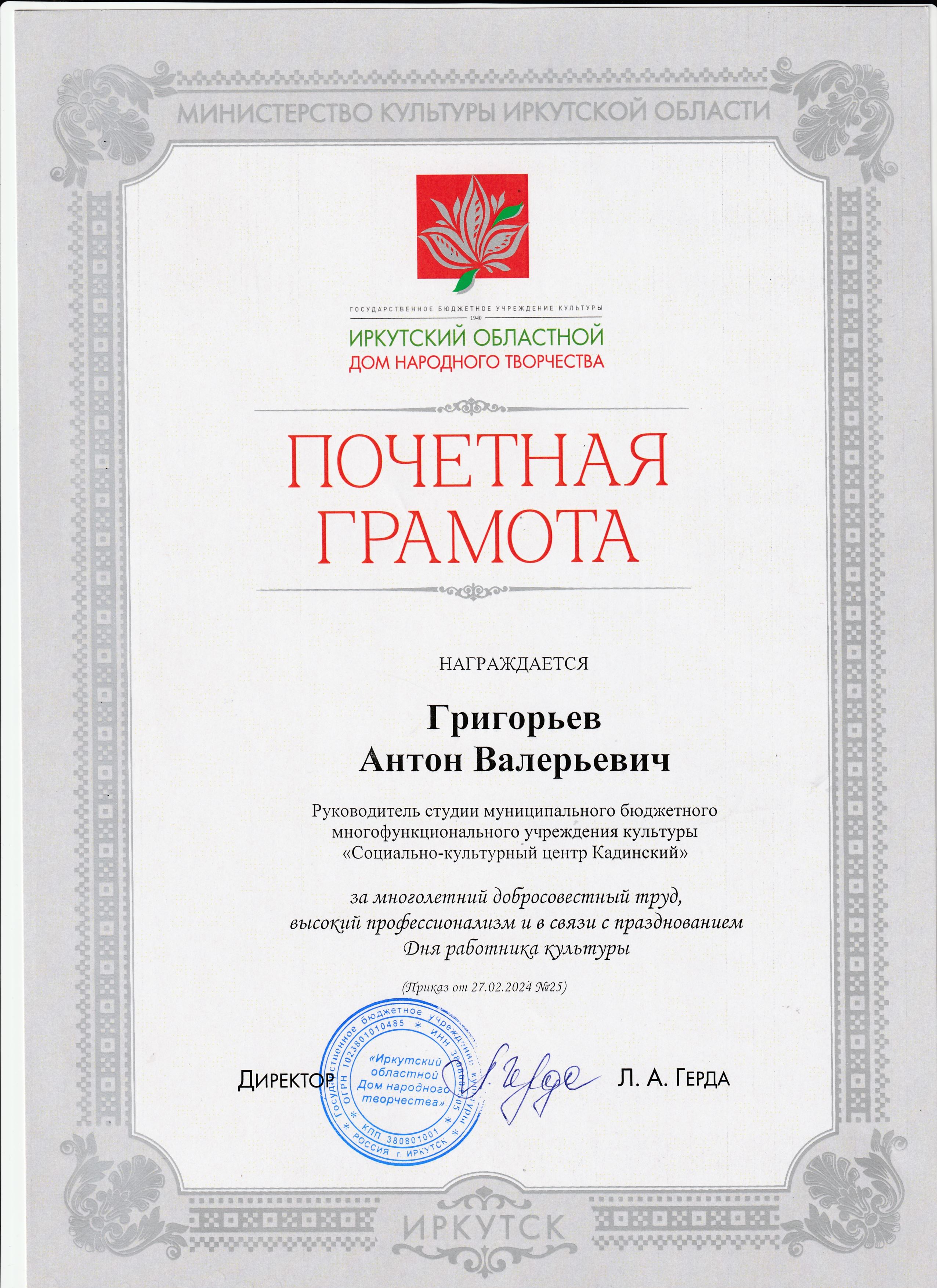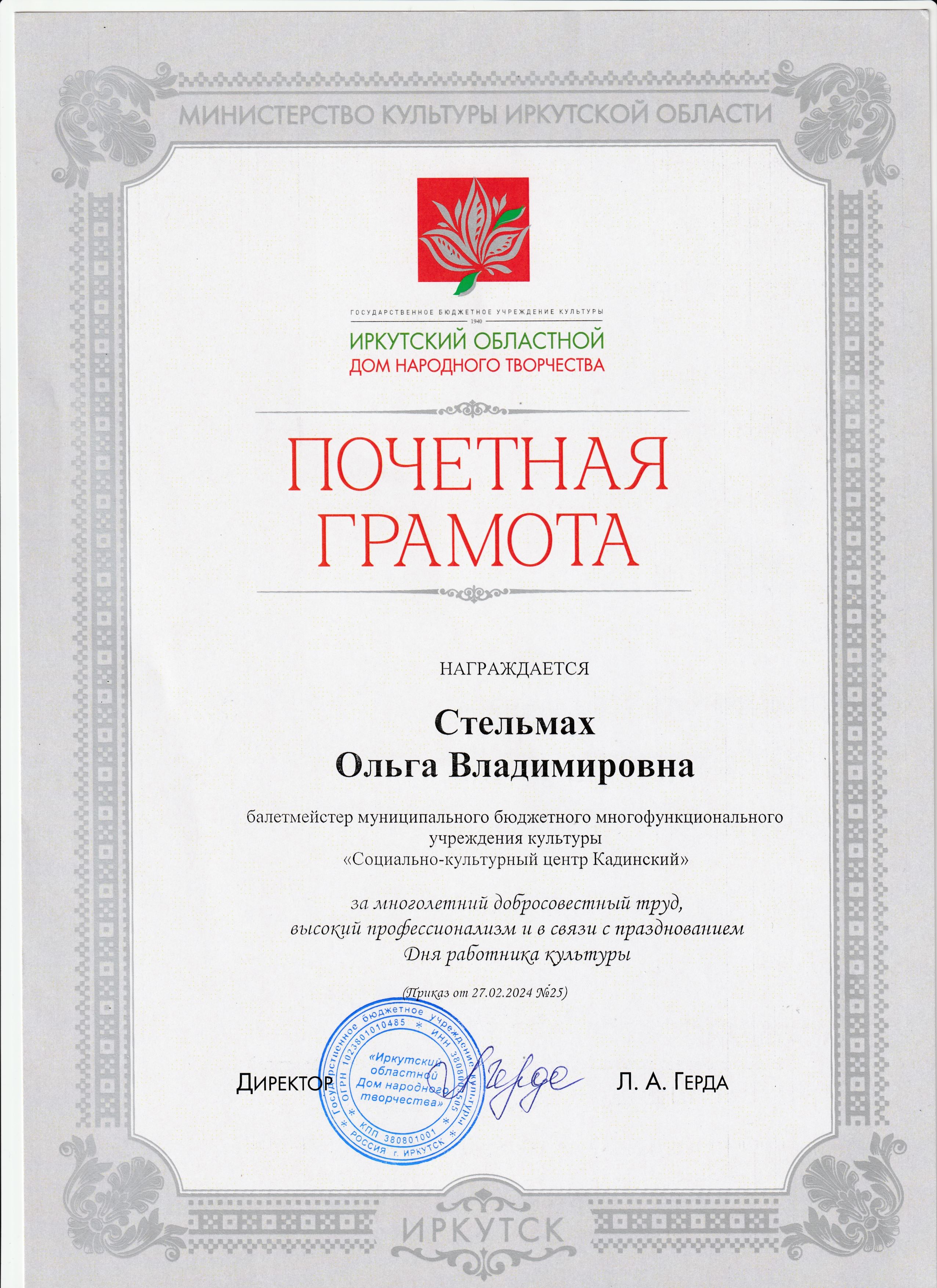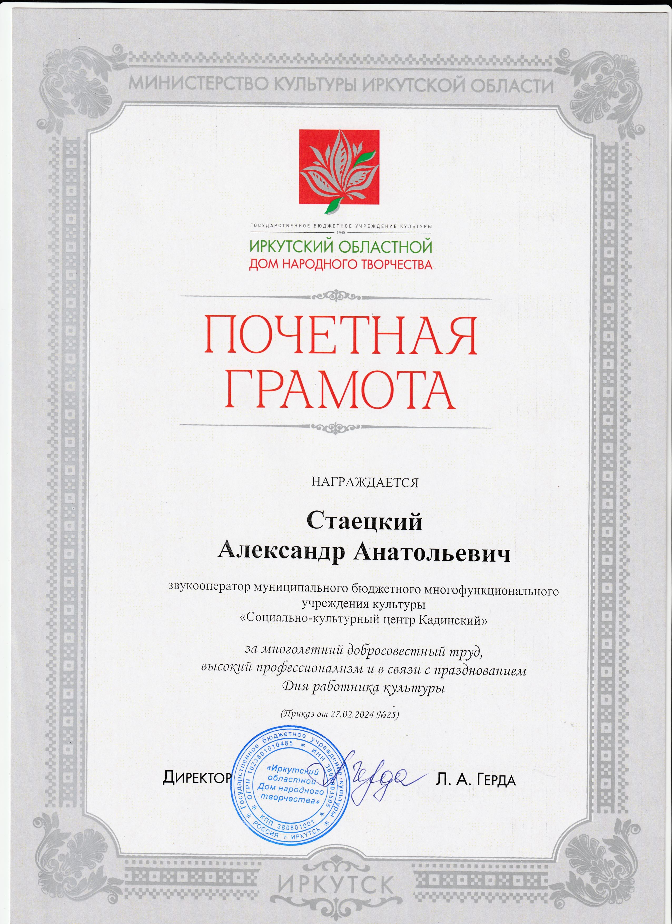 Награждение работников "Социально-культурного центра Кадинский" в связи с празднованием Дня работника культуры.