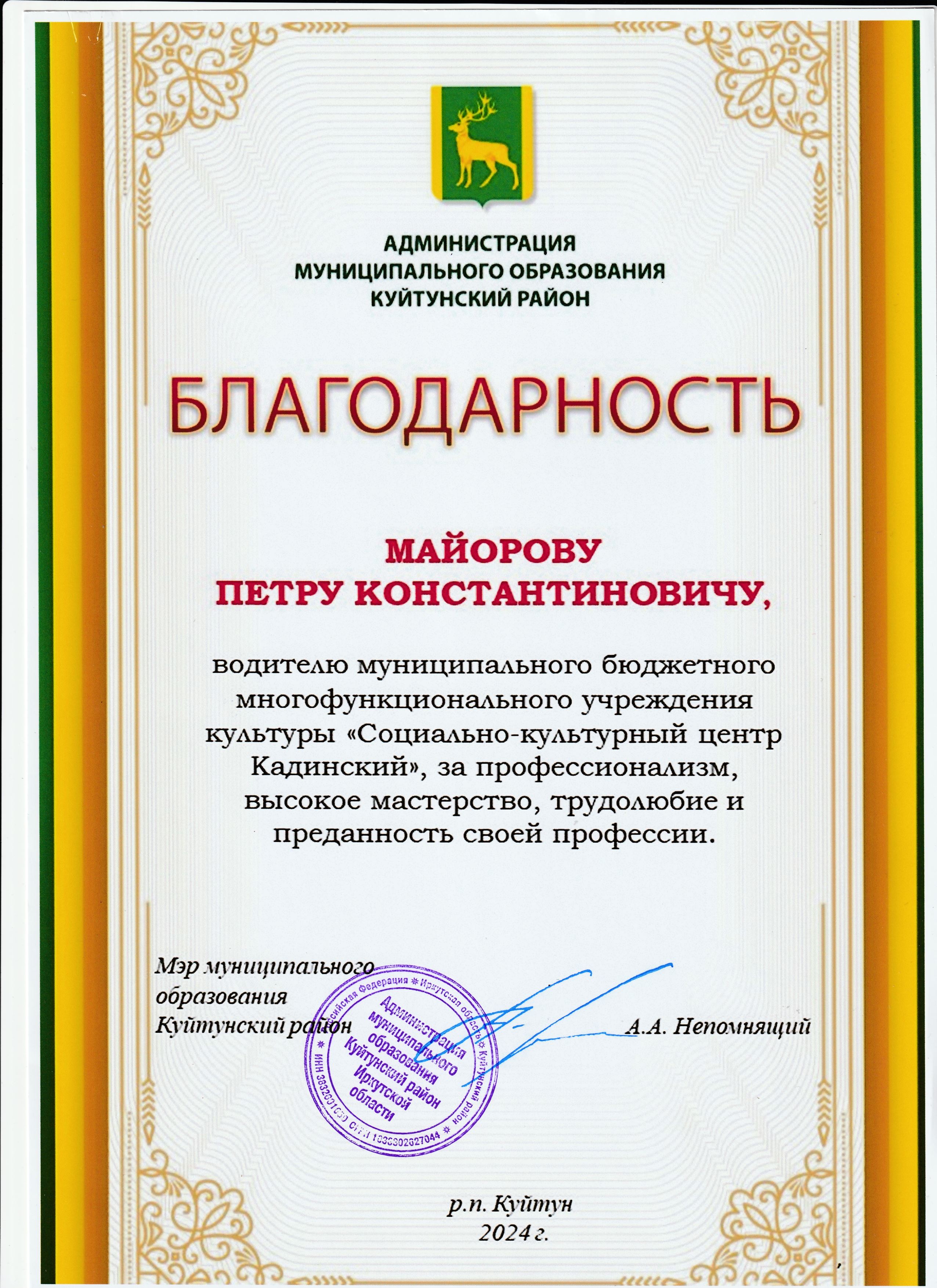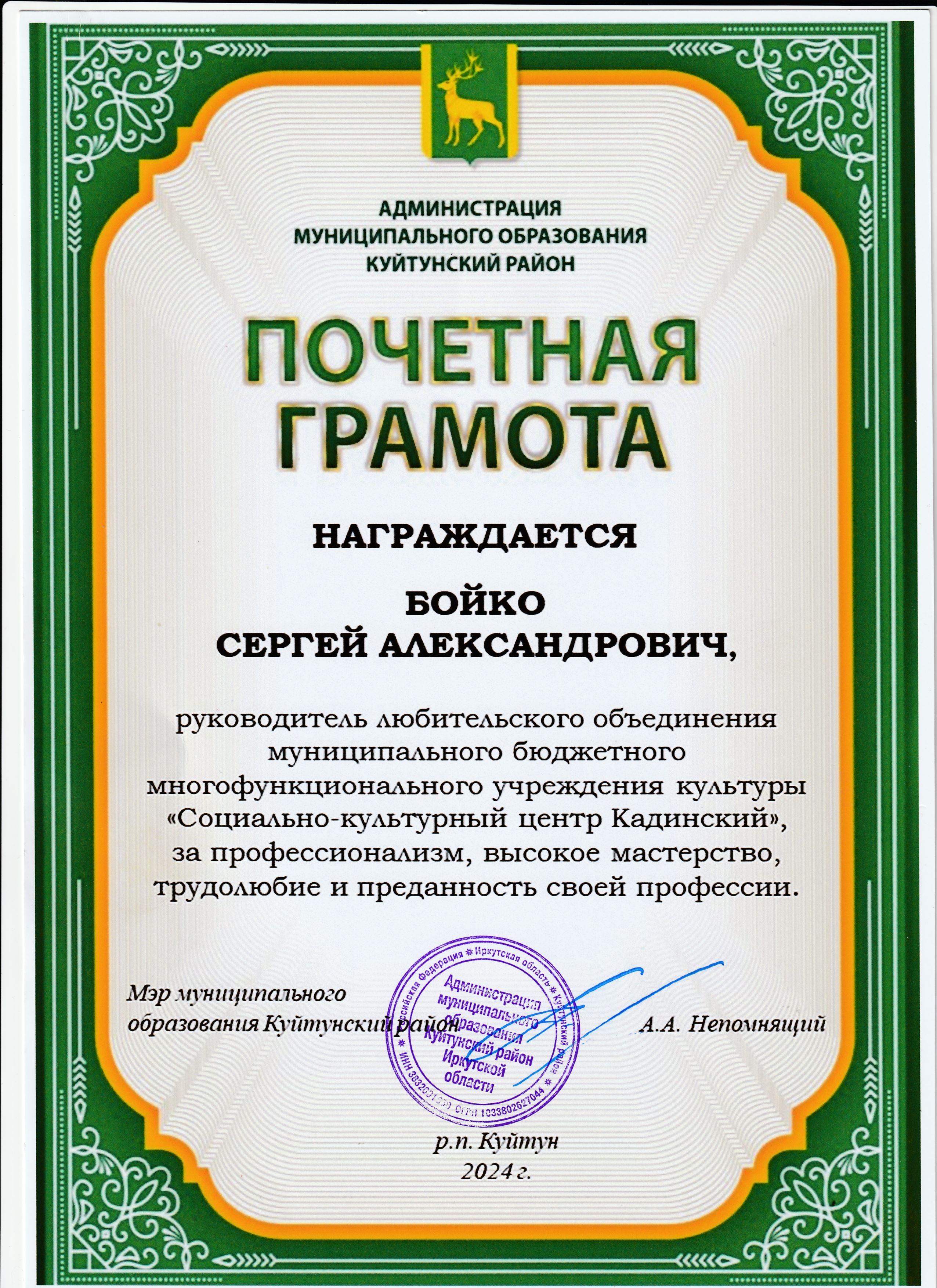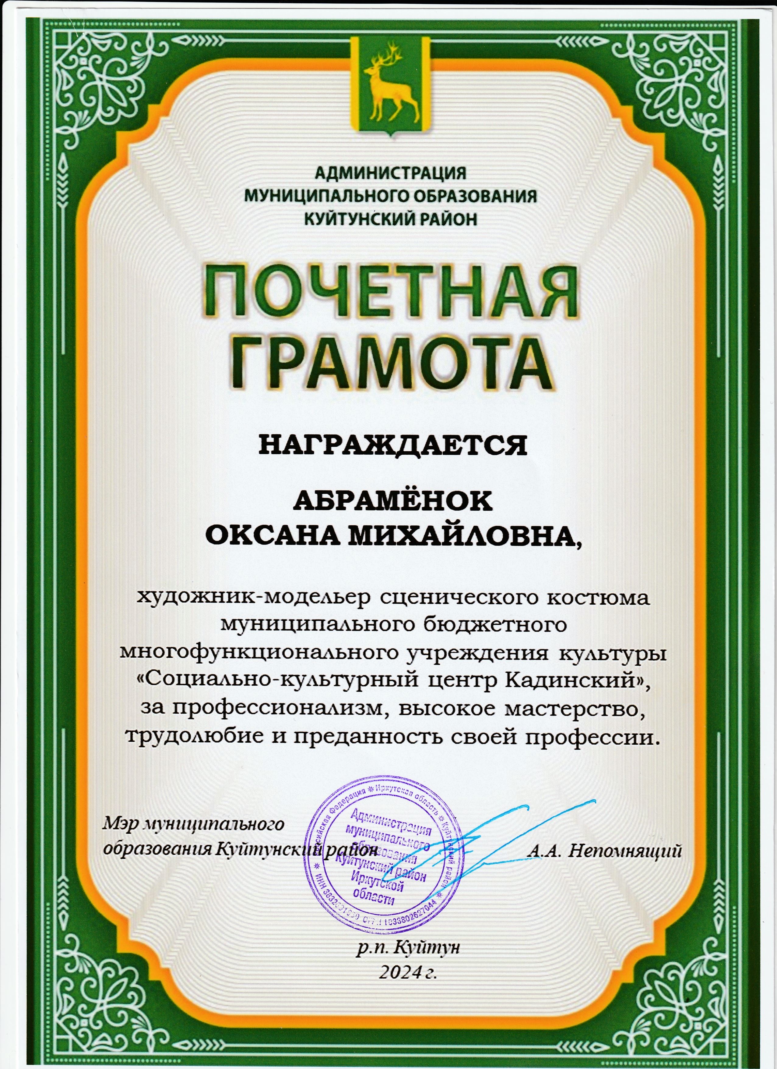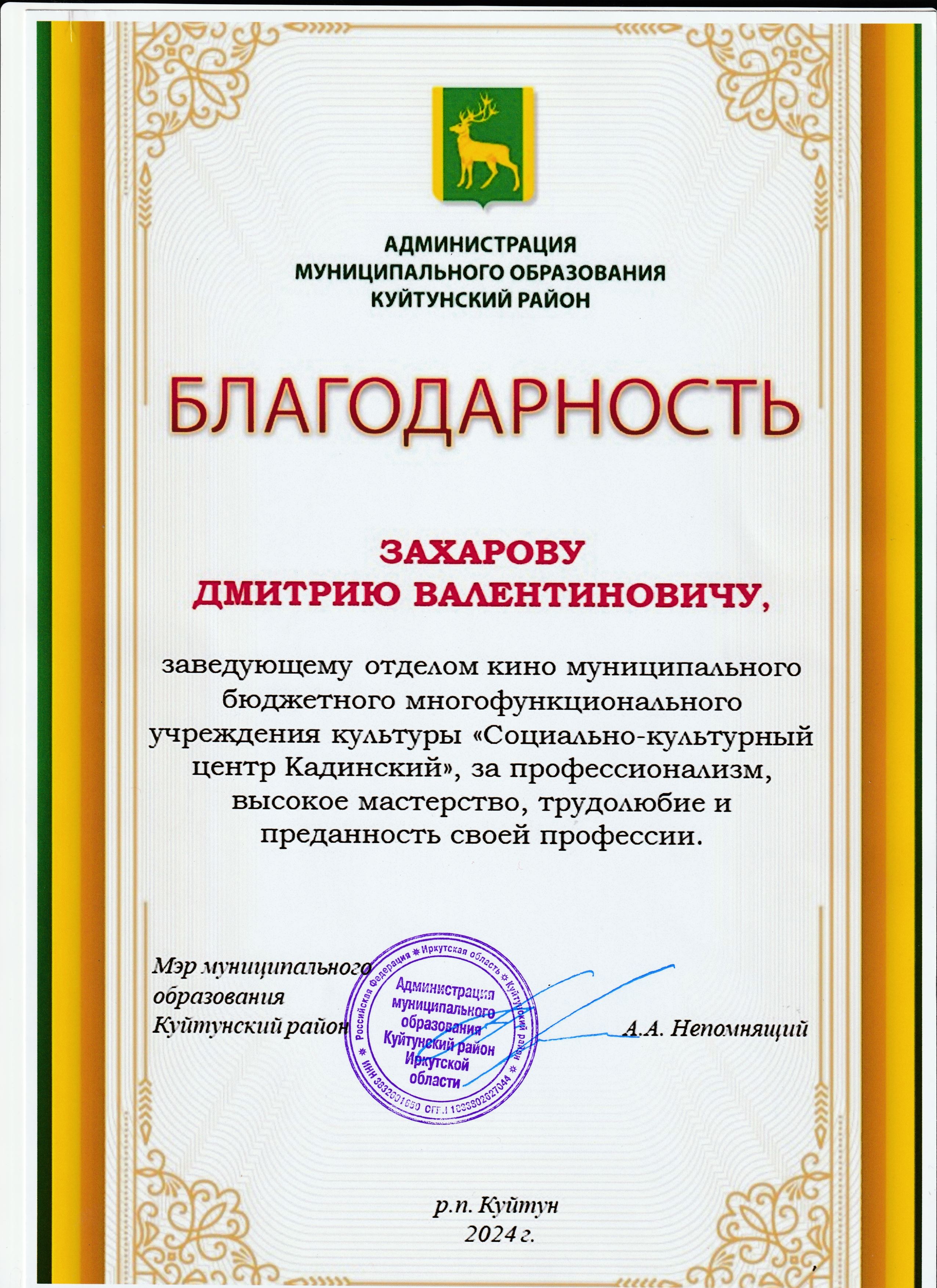 Награждение работников "Социально-культурного центра Кадинский" в связи с празднованием Дня работника культуры.