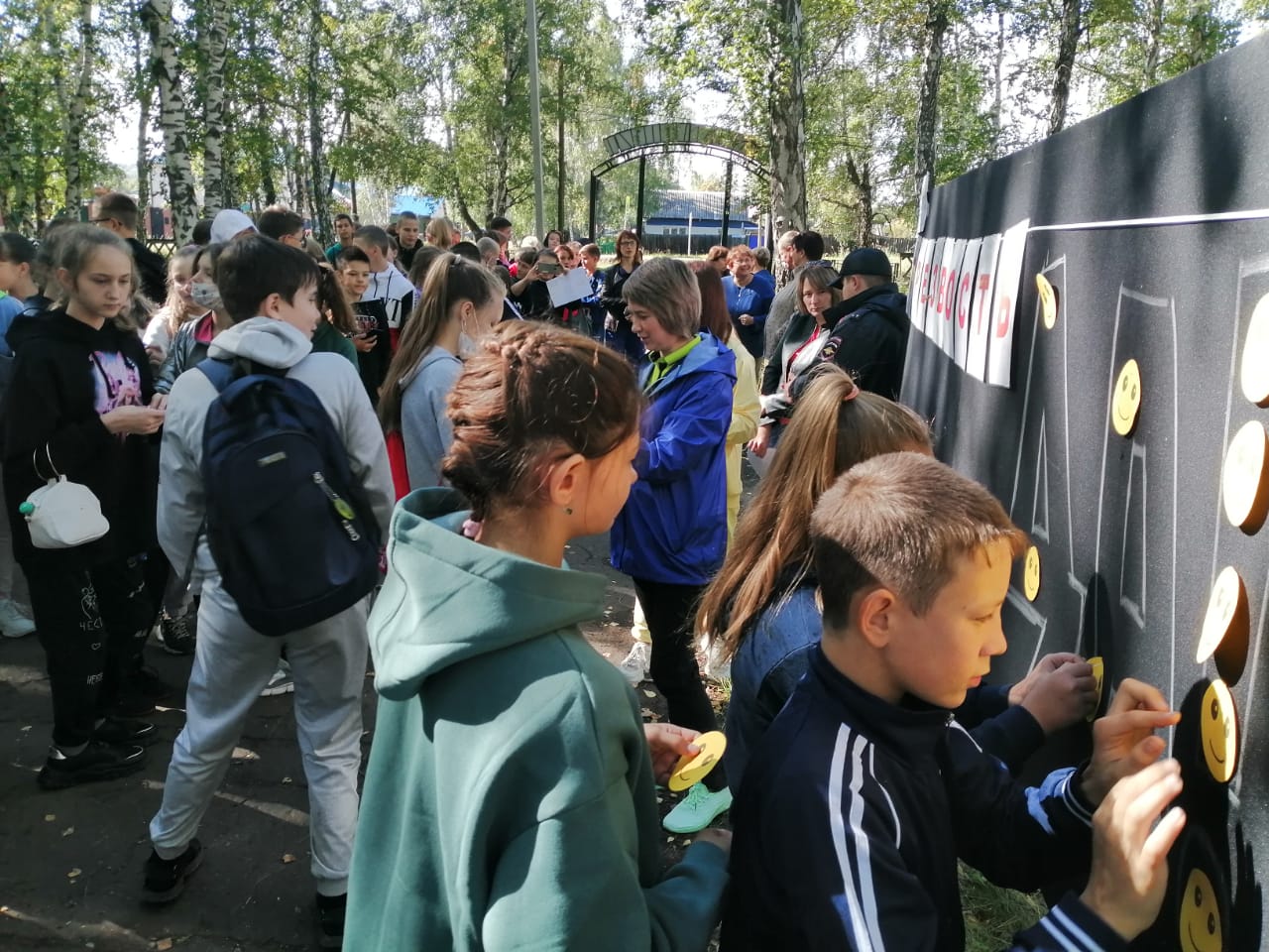 Школьники поучаствовали в флэшмобе и БиблиоМинутах, в забеге "100шагов к здоровому образу жизни" и рисовали плакаты на асфальте и на стендах. Свое утверждение " Трезвости-ДА!" школьники раскрасили смайликами.
