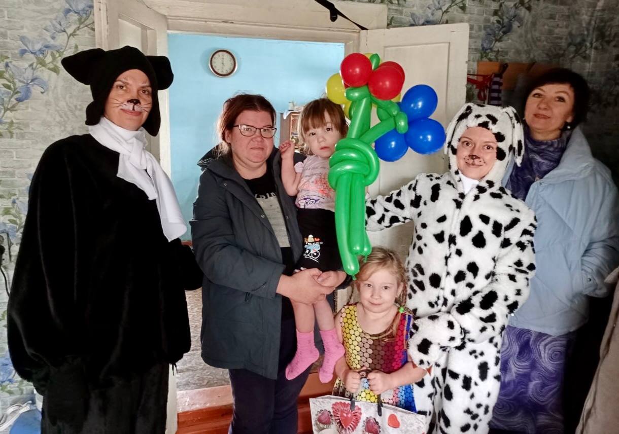 Активисты подарили семьям подарки, спонсорами которых являлись индивидуальные предприниматели Ольга Мрачковская и Ольга Шачнева, а также тёплые пожелания и хорошее настроение.