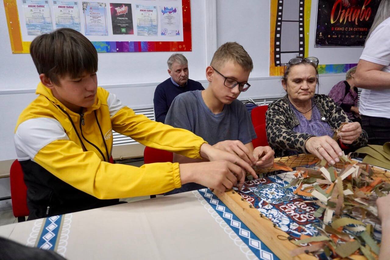 Важной частью Акции стал мастер-класс по плетению нашлемников и браслетов выживания для участников Специальной военной операции. Его провели представители клуба взаимопомощи "Женское братство" («СКЦ Кадинский»), которые, несмотря на трудности, находят силы и вдохновение и заботятся о наших защитниках Родины. А помогали им члены волонтерского движения «Руки помощи» (руководитель Ткаченко И.Ф).