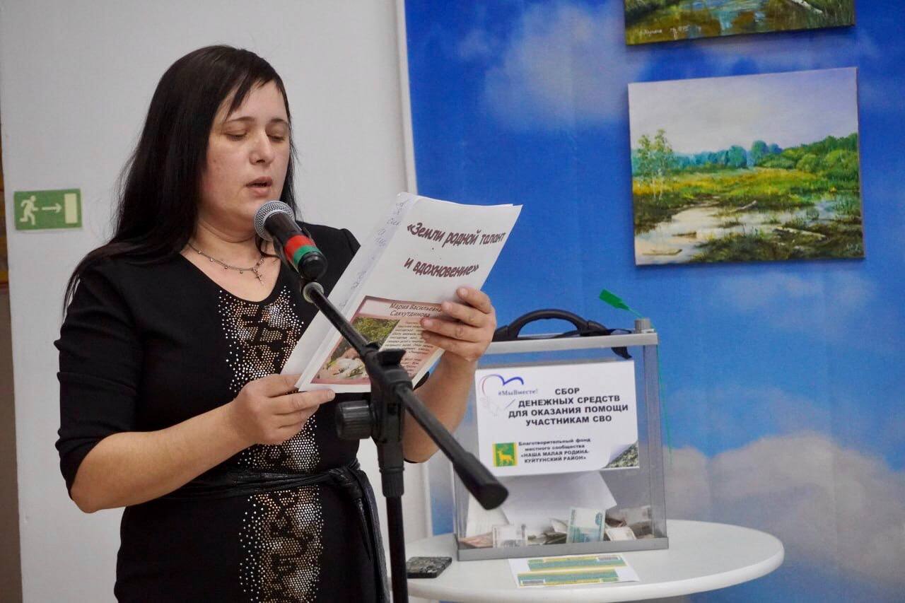 В холле «СКЦ Кадинский» была оформлена выставка живописных полотен Надежды Марценюк. Эти красочные картины являются олицетворением красоты нашей сибирской природы и необъятной Родины. В течение всего плодотворного дня участники Акции наслаждались праздничным марафоном авторских стихотворений местных поэтов Натальи Скуратовской, Светланы Бушиной и Марии Саяхутдиновой. Авторские песни под аккомпанемент гитары Алексея Казакова также добавили атмосферу тепла и душевности. Стихотворения, прочтенные участниками СВО в видео-формате стали напоминанием о том, что только объединившись вместе-нам любые трудности по плечу.