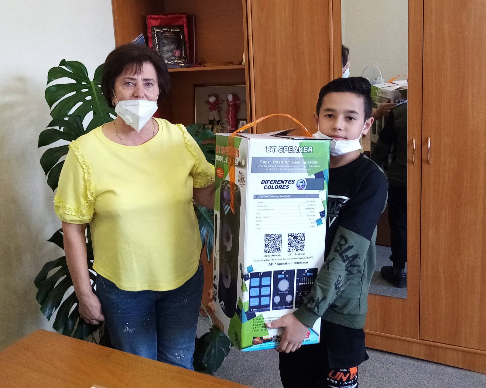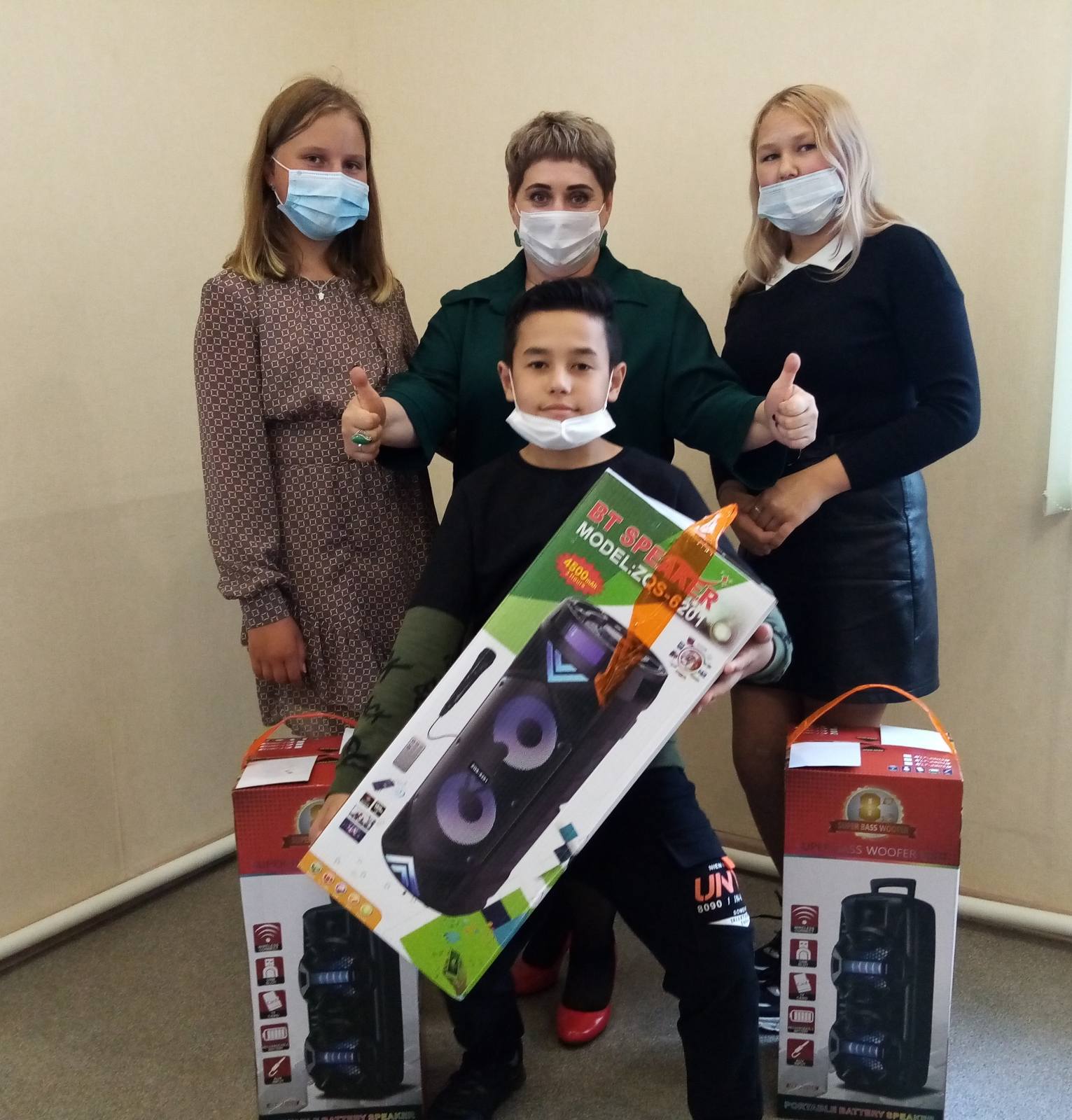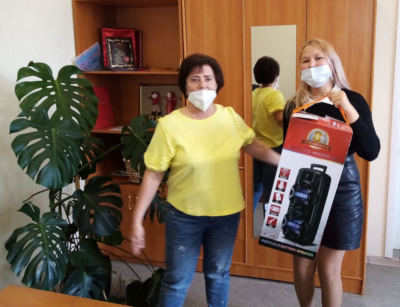 И самым приятным моментом на встрече было вручение подарков от мецената Татьяны Петровны Киреевой. Это вокальные аккустические системы с микрофоном!!! Этот подарок для детей-огромная радость! Татьяна Петровна высказала огромную благодарность юным дарованиям за минуты радости и восторга, которые несут со сцены дети, исполняя свои песни для зрителей... Людмила Иннокентьевна вручила благодарность и цветы Татьяне Петровне, отметив, что у нее огромное доброе сердце...