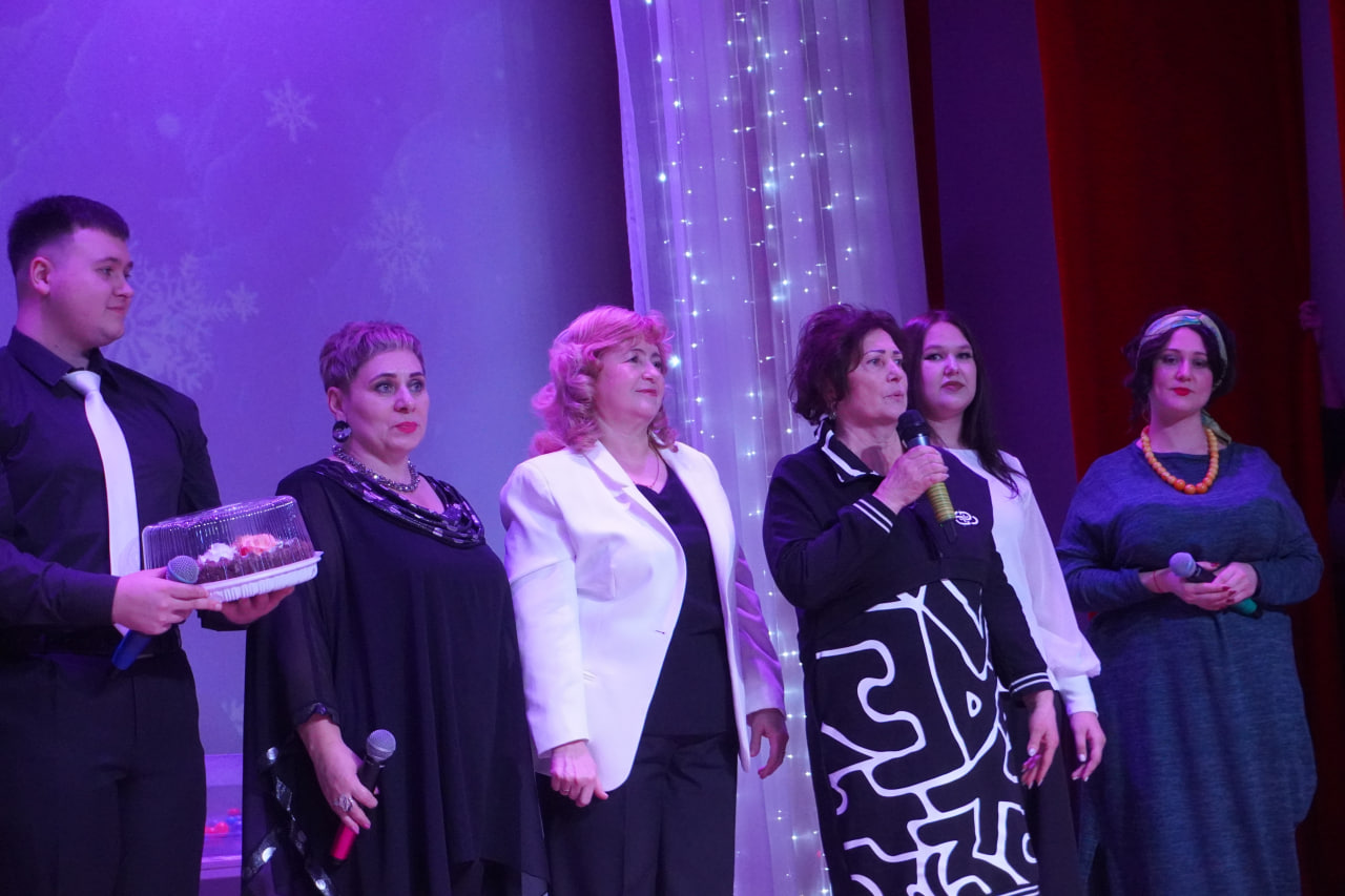 Глава Куйтунского городского поселения Людмила Яковлева и директор ООО «Вита» Татьяна Киреева поздравили всех присутствующих с Наступающим Новым годом и поблагодарили коллектив «Социально-культурного центра Кадинский» за прекрасное представление, вручив большой сладкий торт.