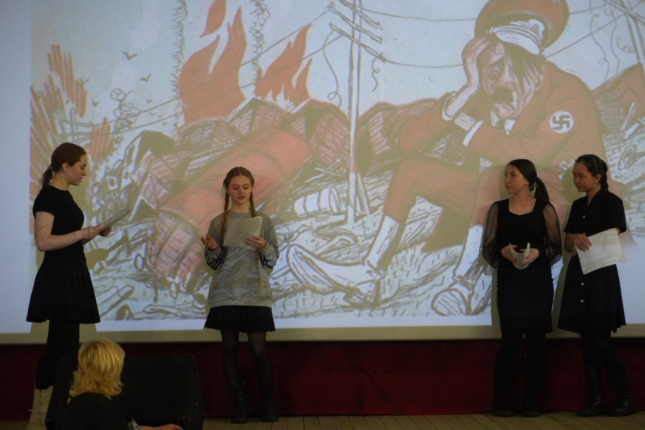 Ведущие программы Светлана Свистунова и Марина Куликова познакомили подростков с различными жанрами фронтовой сатиры, таких как анекдоты, пародии, песни, частушки, сатирические стихотворения и карикатуры. Дети узнали о значении театров и концертных бригад, которые поднимали настроение солдатам и гражданским людям, а также о влиянии антивоенных плакатов и рисунков на общественное сознание.