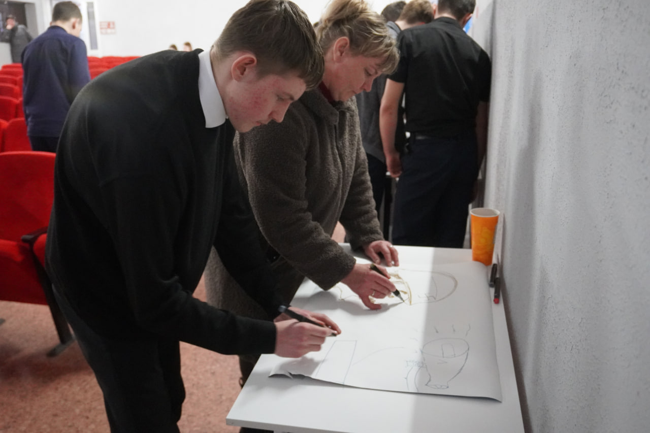 В конце встречи каждый участник смог попробовать себя в роли художника, создавая свой собственный военный плакат или карикатуру под руководством наставника. Участники активно творили, придумывали и рисовали свои сатирические карикатуры, проявляя креативность и фантазию.