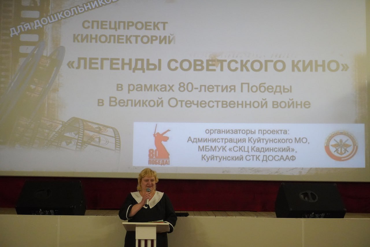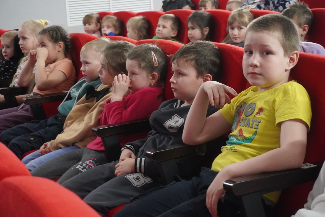В «Социально-культурном центре Кадинский" в рамках проекта "Связь времён: уроки стойкости и героизма" продолжается ежемесячный кинолекторий "Легенды советского кино", посвященный 80-летию Победы. Очередное мероприятие приняло в гости юных зрителей – воспитанников детских садов поселка Куйтун.