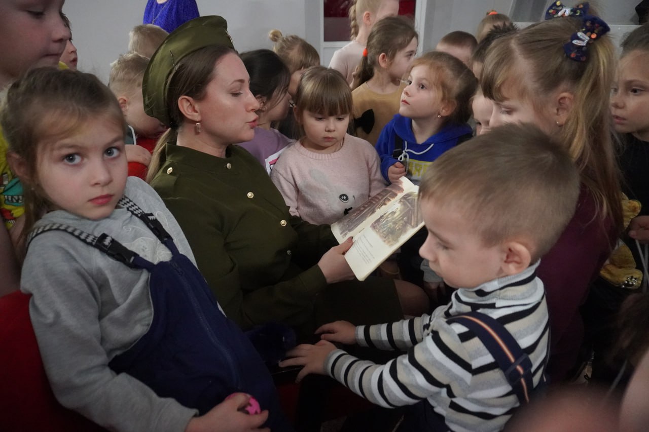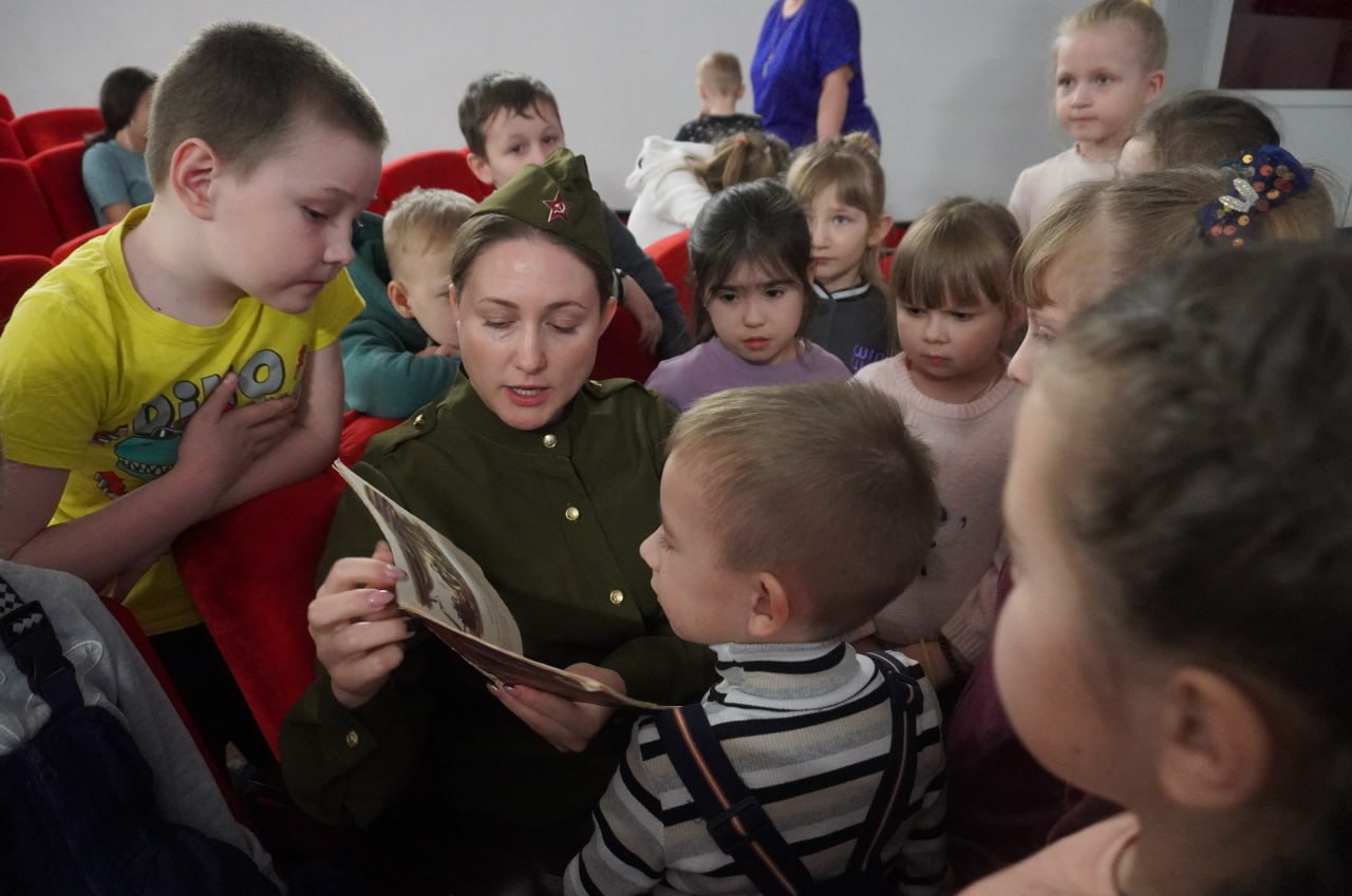 Библиотекарь «СКЦ Кадинский" Светлана Свистунова провела для ребят увлекательную экскурсию в мир военной истории. Дети смогли увидеть настоящую военную форму, которую носили солдаты в годы войны, а также познакомились с иллюстрациями из книг, посвященных этой эпохи. Ребята активно участвовали в обсуждении, задавали вопросы и делились своими впечатлениями о подвигах солдат и детей.