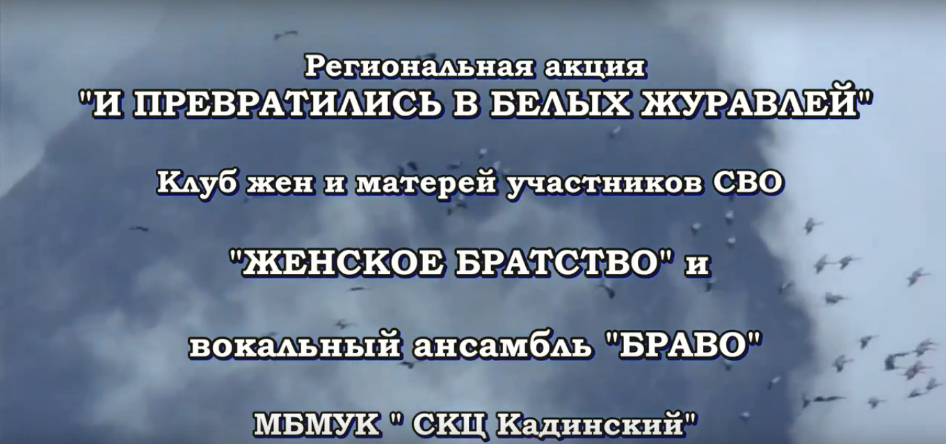 Клуб жён и матерей участников СВО «Женское братство» и вокальный ансамбль «Браво» МБМУК «СКЦ Кадинский» р.п. Куйтун приняли участие в РЕГИОНАЛЬНОЙ АКЦИИ «И ПРЕВРАТИЛИСЬ В БЕЛЫХ ЖУРАВЛЕЙ», приуроченной к 80-летию Дня Победы в Великой Отечественной войне 1941-1945г и посвященной памяти павших Героев. #И_превратились_в_белых_журавлей_ИО