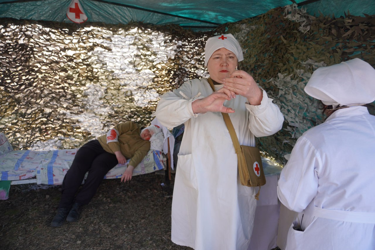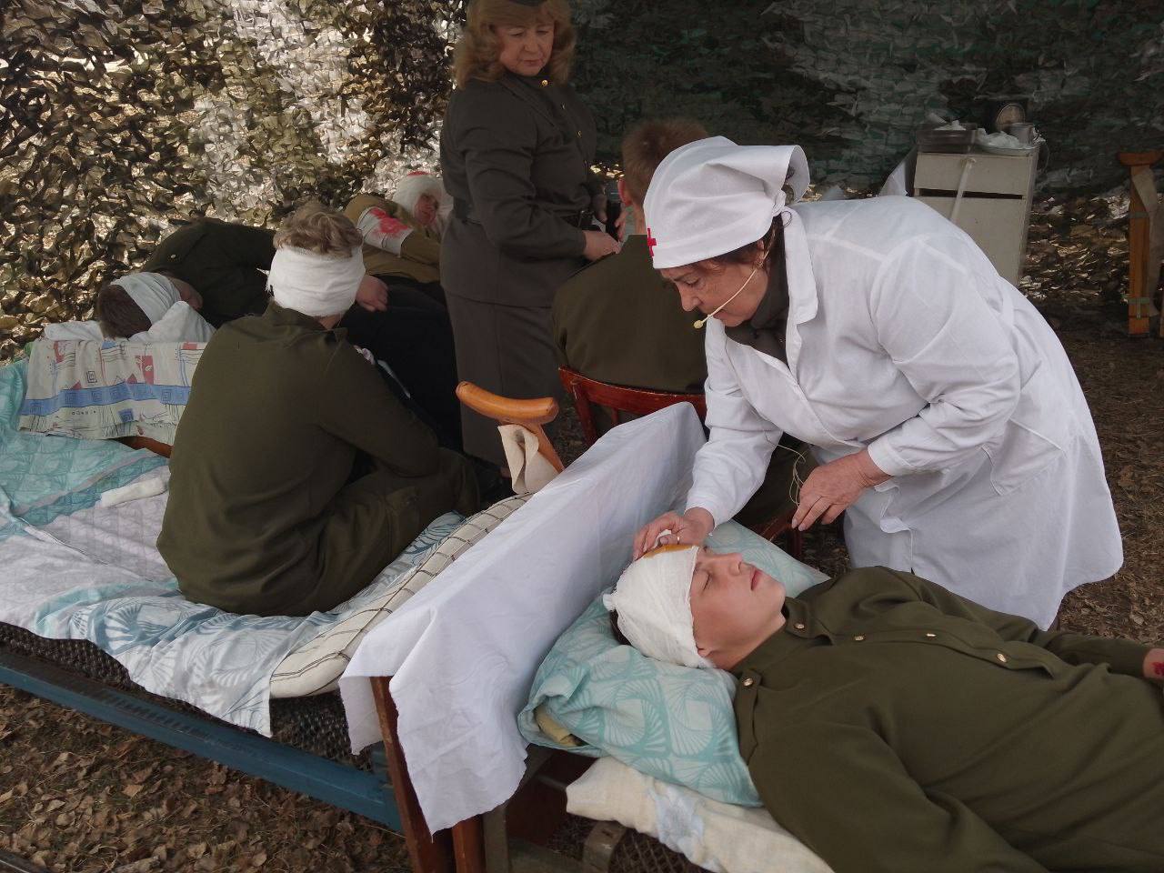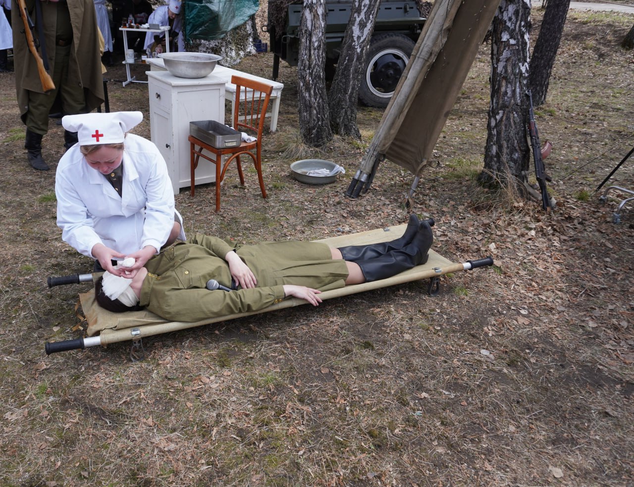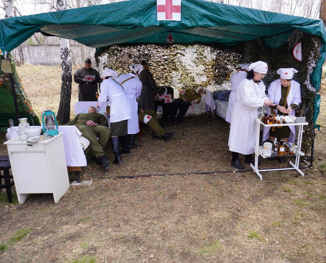 Все было точно так же, как в военные годы: палатки с операционными столами, где оказывалась первая помощь бойцам, медсестры и врачи в медицинской одежде перевязывали раны, извлекали пули, проводили сложнейшие операции. В каждой палатке располагались медицинские инструменты и оборудование, перевязочные материалы, документы, предметы быта, мебель, кровати военных времен – все до мелочей было реконструировано участниками медсанбата.