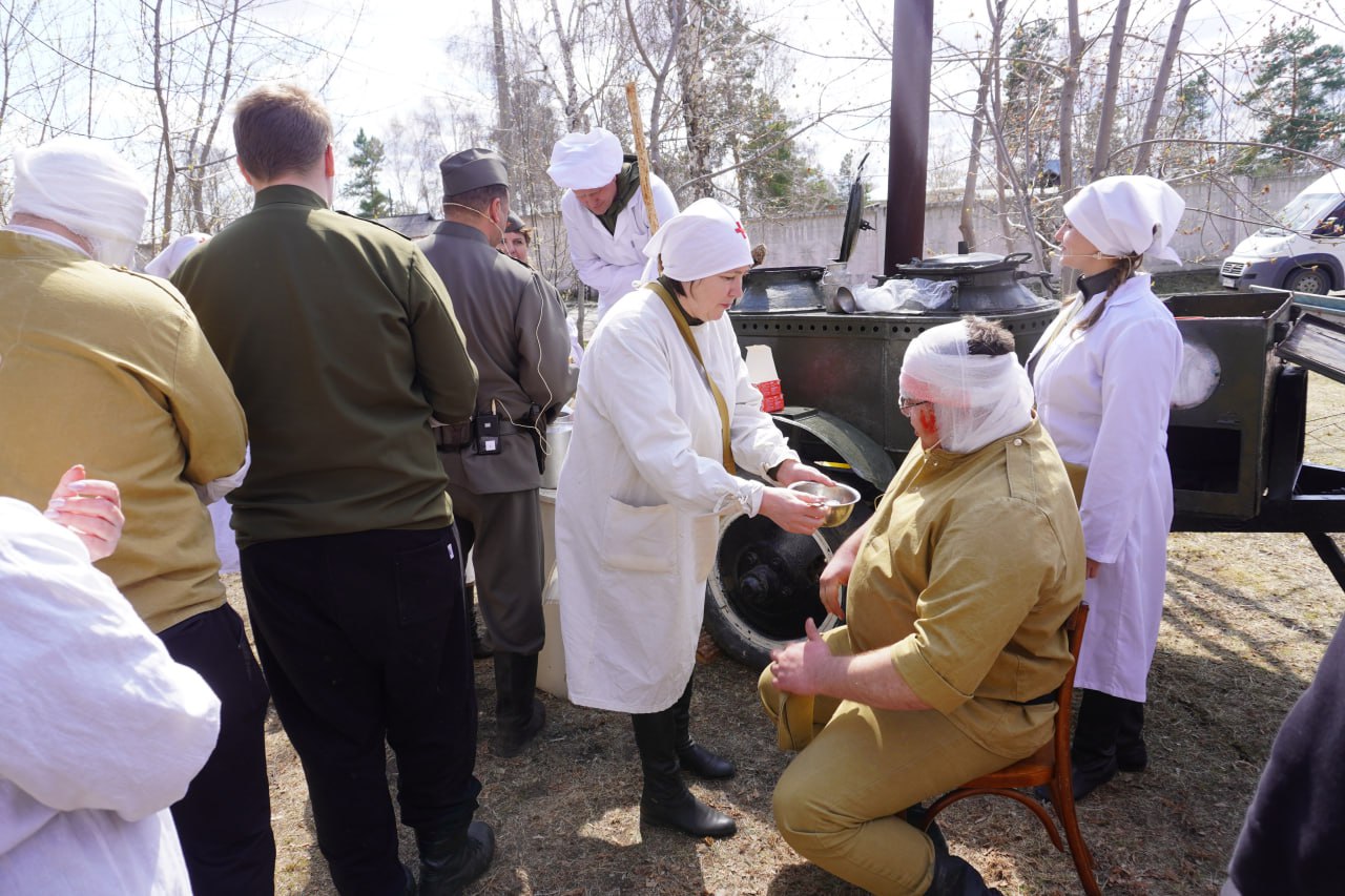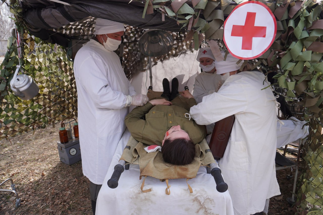 Участники реконструкции воссоздали правдивую картину быта и работу медсанбата, восстановленную на реальных событиях войны 1945 года.