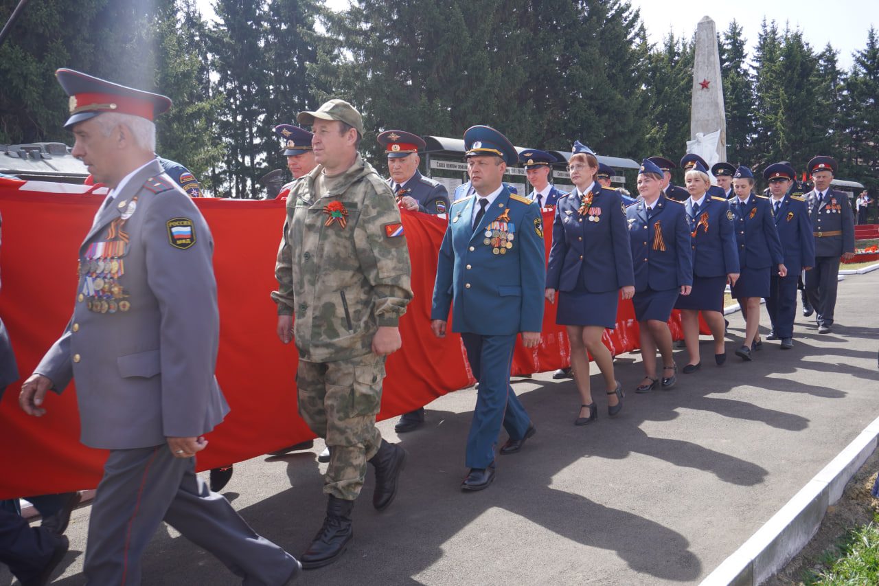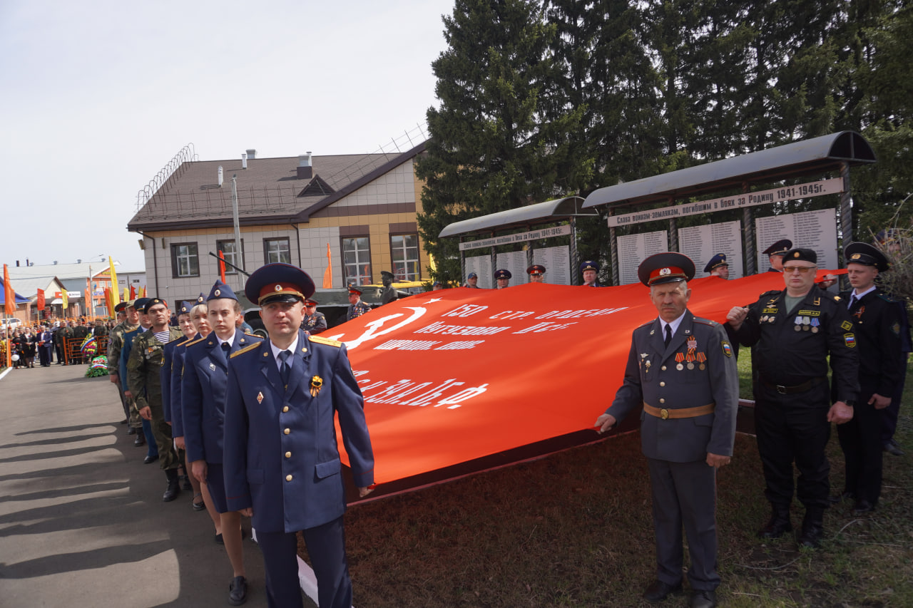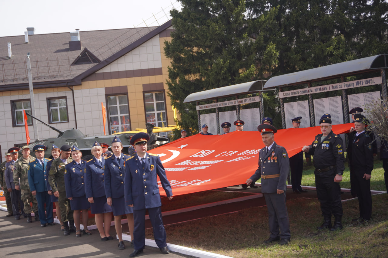 Под торжественный марш Знамя Победы внесли те, кто сегодня продолжает дело защиты Отечества: участники Специальной военной операции, ветераны МВД и сотрудники МЧС, ветераны общественной организации ветеранов «Боевое братство», сотрудники Прокуратуры Куйтунского района и Уголовно-исполнительской инспекции.