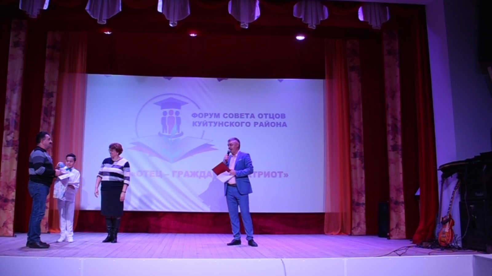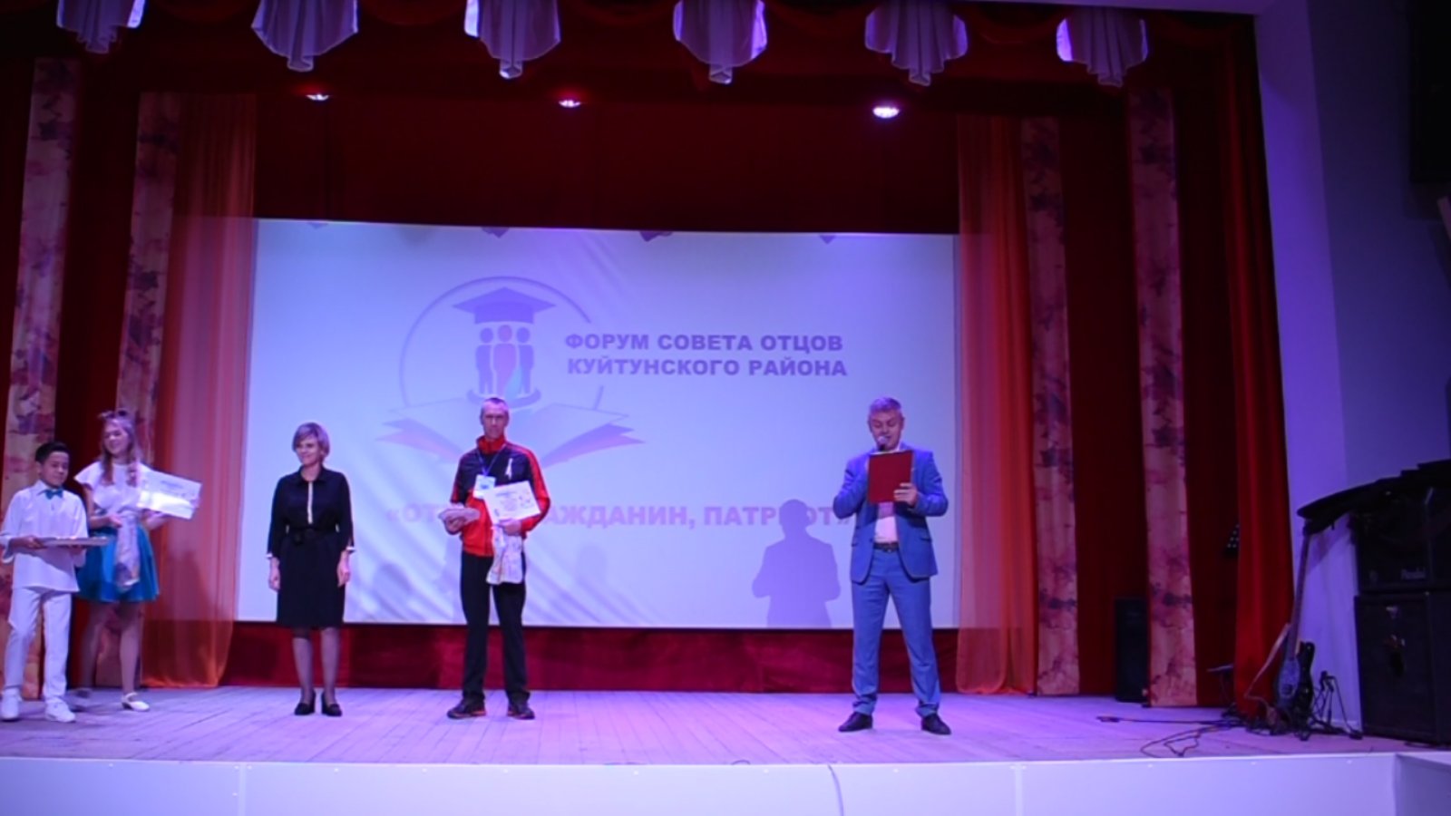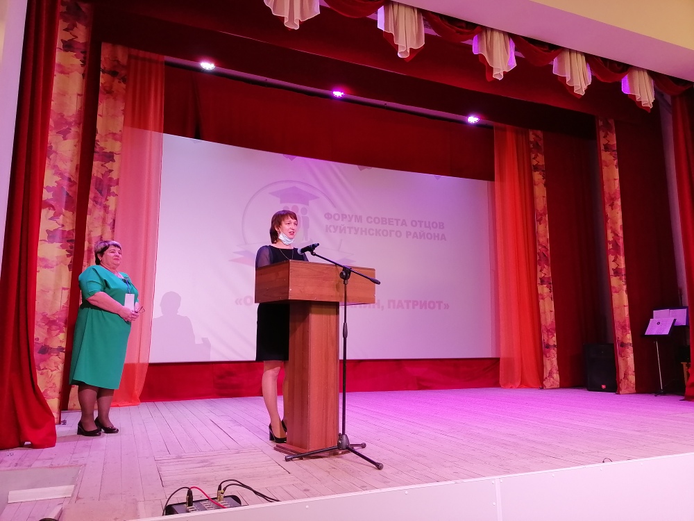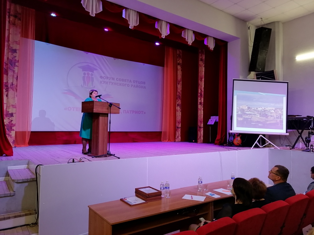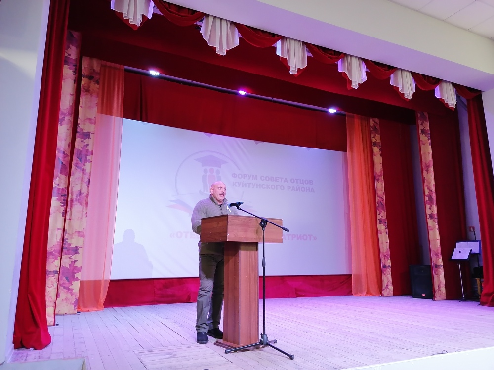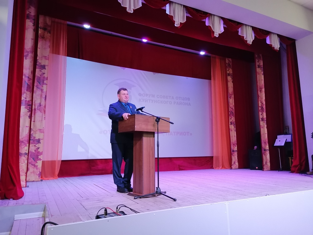 Форум открыли "Гимном России". Ведущая форума, специалист управления образования Марина Ивановна Третьякова, провела анализ деятельности гражданско- патриотического воспитания в Куйтунском районе. Она говорила о том, что на плечах отца должно лежать гражданско- патриотическое воспитание. Могучую воспитательную силу имеют семейные традиции, и где как не в полноценной семье можно ощутить их влияние. Куйтунские отцы уделяют много внимания гражданско-патриотическому воспитанию и делают это со всей ответственностью.