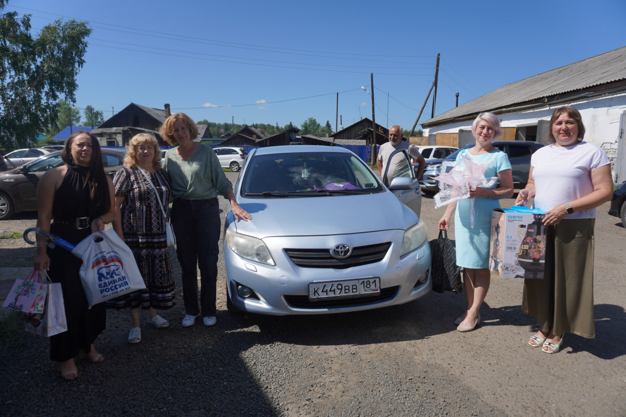 Эта незабываемая дружеская встреча, конечно, не обошлась и без подарков, которые вручили Марина Александровна Захарова, исполняющая обязанности главы Куйтунского МО, Лариса Викторовна Майорова- директор "СКЦ Кадинский", Наталья Петровна Чуприкова - координатор Женского движения партии "Единая Россия" в Куйтунском районе, Татьяна Петровна Киреева - председатель Совета предпринимателей р.п.Куйтун и Анна Валерьевна Антипина, Светлана Анатольевна Пинчук, Алексей Николаевич Пытко - представители Советов женщин и отцов р. п. Куйтун.