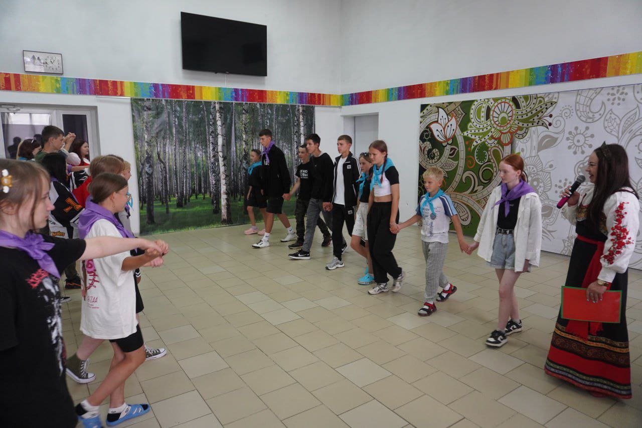 Хозяйка праздника встретила детей, рассказав историю хороводов, пригласила всех поиграть в «Хороводушки». Под русскую народную музыку участники образовали хоровод и водили "Посолонь" и "Противосолонь", узнали, что такое русский поклон и когда и для кого его делали. Яркая и динамичная программа погрузила детей в мир старинных русских забав, народной музыки и танцев. Дети стали активными участниками праздника, открыв для себя увлекательную историю хороводов и разнообразные формы их исполнения, а также с удовольствием включились в народные игры в хороводе. Весёлые движения в хороводе, «Ручеёк», «Золотые ворота», "Веночек" под задорные напевы- все это ребята выполняли с огромным желанием.