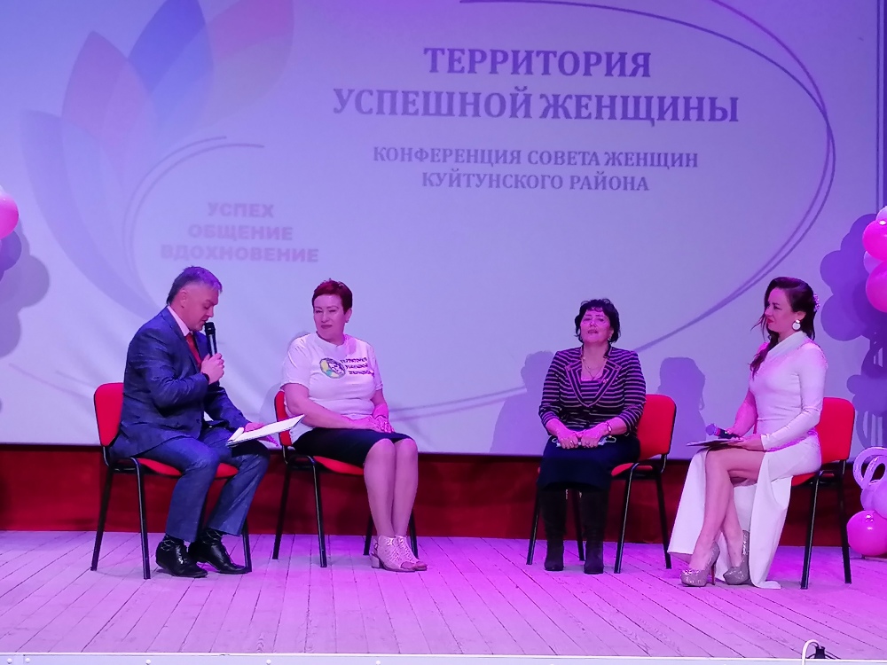 Конференция продолжилась живым диалогом ведущих Натальи и Антона с успешными женщинами п.Куйтун, Татьяной Киреевой и Татьяной Ишмухаметовой. Они рассказали о своем пути к успешности. Кроме того эти прекрасные женщины являются благотворителями и меценатами мероприятий района и их благотворительности мы все отдаем низкий поклон.