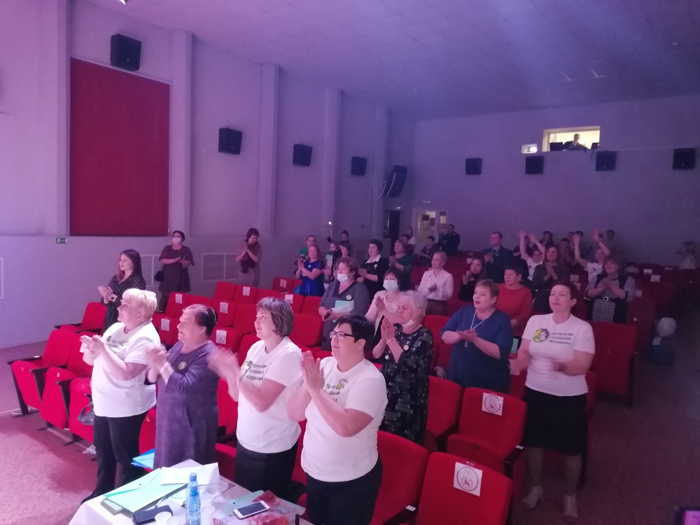 И вот приятное событие! Одна из участниц конференции, Анна Антипина в день конференции отмечала свой юбилей. И конечно же ей цветы и подарки от главы Куйтунского МО Людмилы Яковлевой и Алены Якубчик. Зал аплодисментами поздравлял Анну.