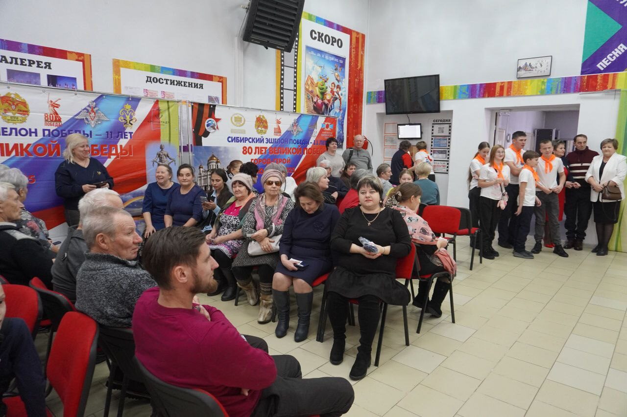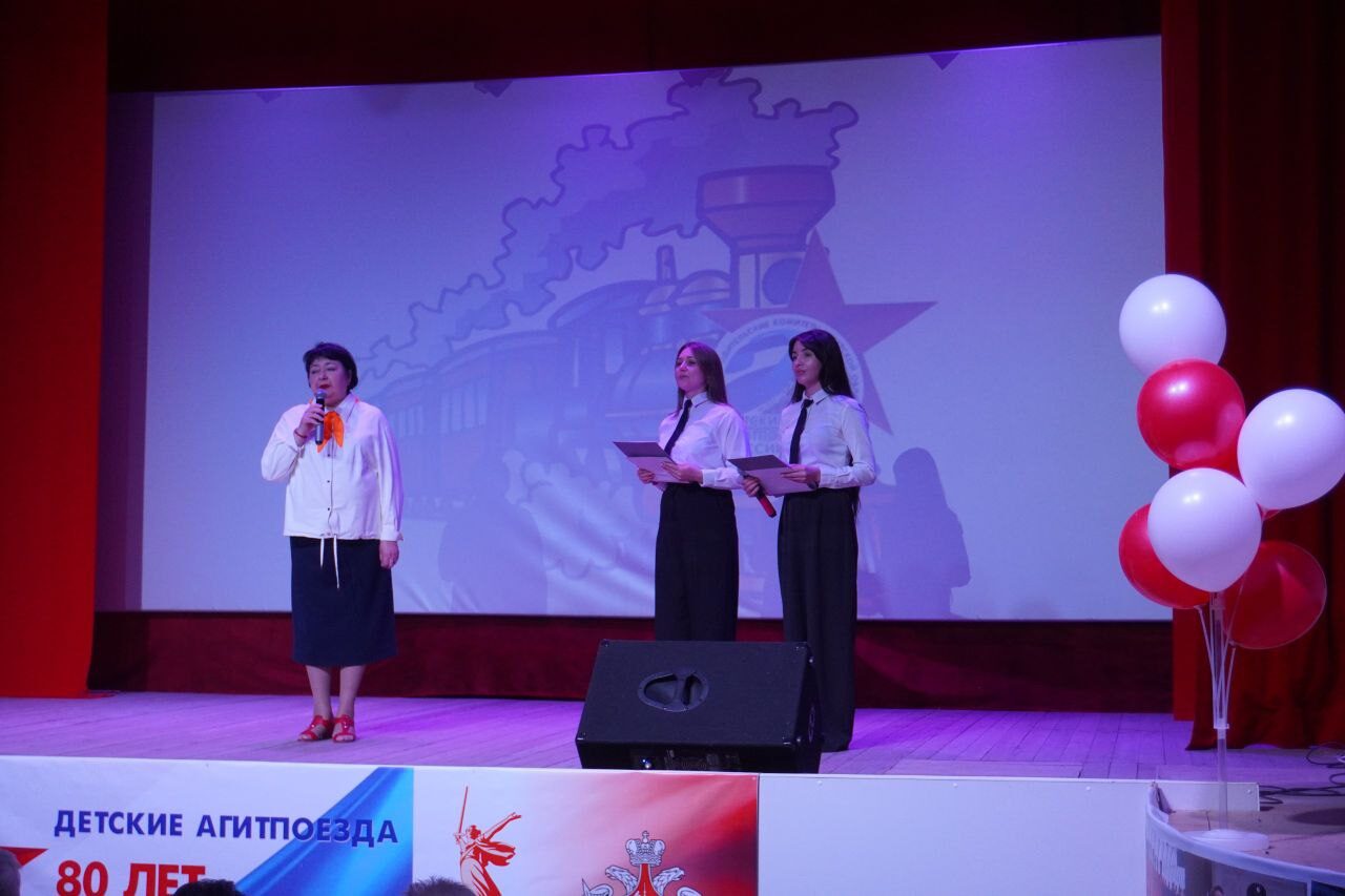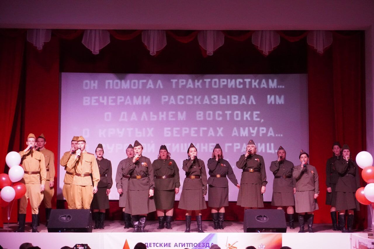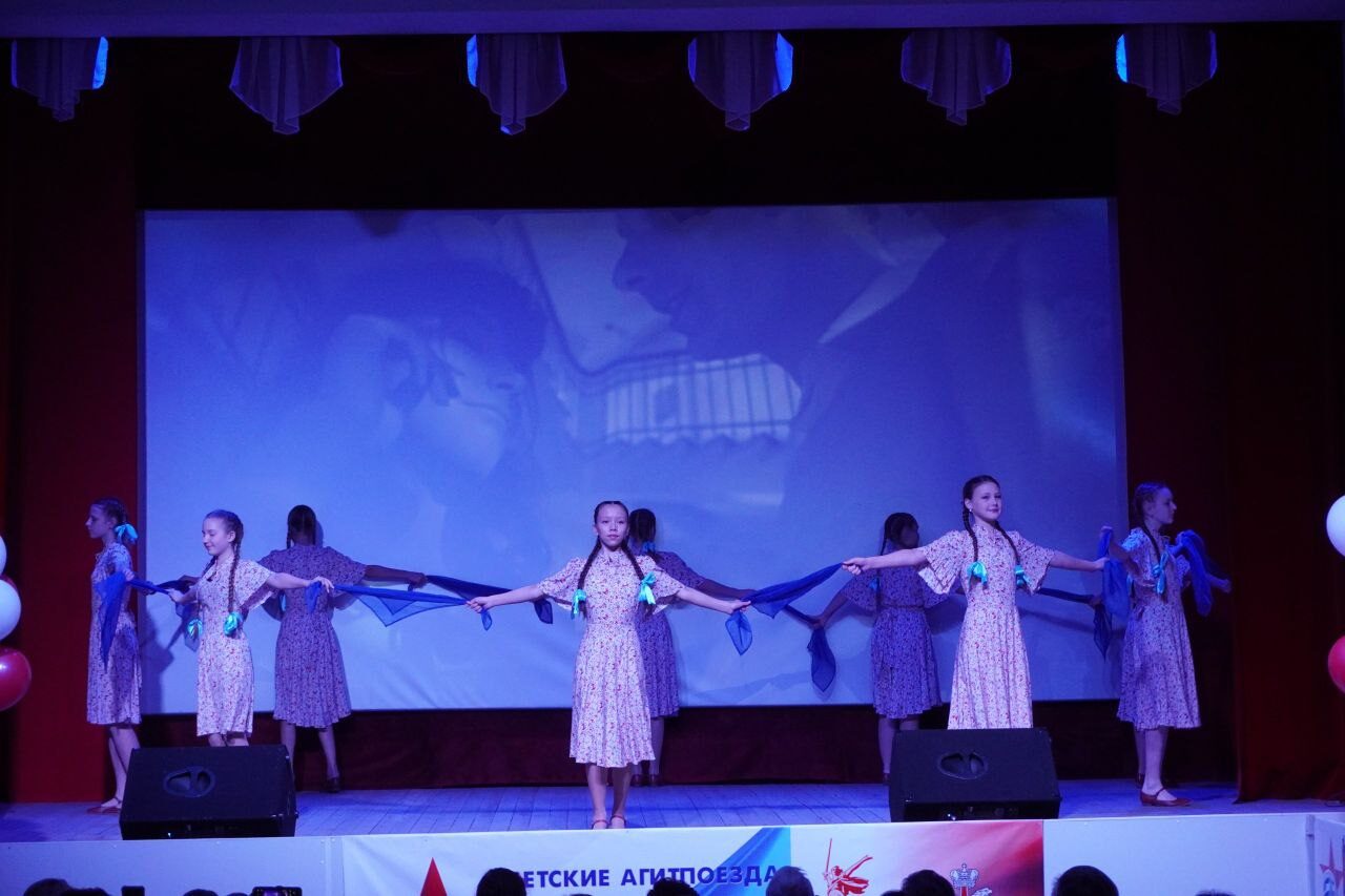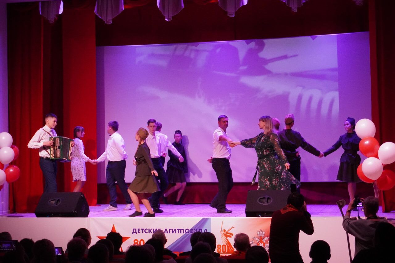 Центральным событием вечера стало творческое выступление детей и взрослых — участников поезда из Иркутской области, подготовленное для детей войны и гостей. Сцена "Социально-культурного центра Кадинский" на мгновение стала плацдармом для «агитбригады к 80-летию Великой Победы». Выступление артистов подобно творческому фонтану, где мощные струи энергии — танца, песни и театрализованных действий — сливались в единый поток, олицетворяющий несокрушимый дух Победы. Ярким и трогательным символом преемственности поколений стало повязывание оранжевых галстуков детям войны — символу этой уникальной патриотической поездки.