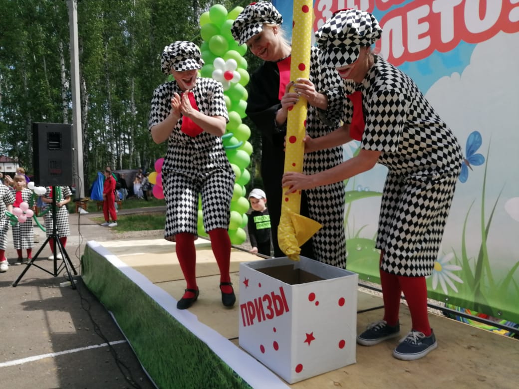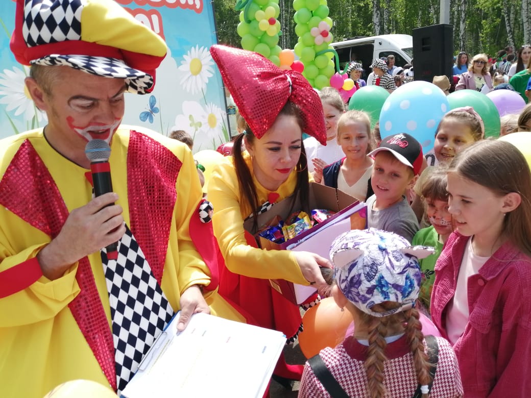 Радостные клоуны "Социально - культурного центра Кадинский"-Тося и Бося со своими помощниками- клоунами Клепой, Ириской и Конфеткой, ведущие всей праздничной программы - подарили ребятне массу веселых танцев, игр, шуток и конечно же сюрпризов