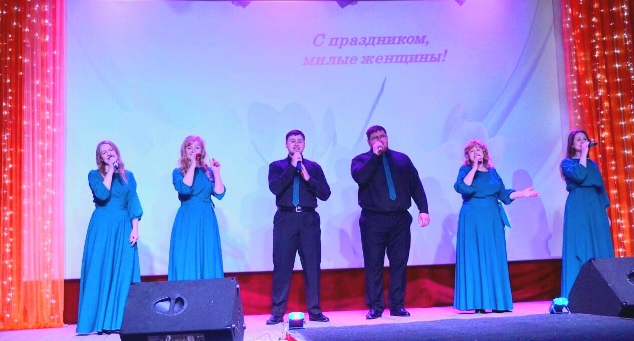 Народный хор «Русская песня» и солист «Социально-культурного центра Кадинский» Юрий Макаренко поздравили представителей «Совета женщин» Куйтунского района с наступающим Международным женским днём![]()