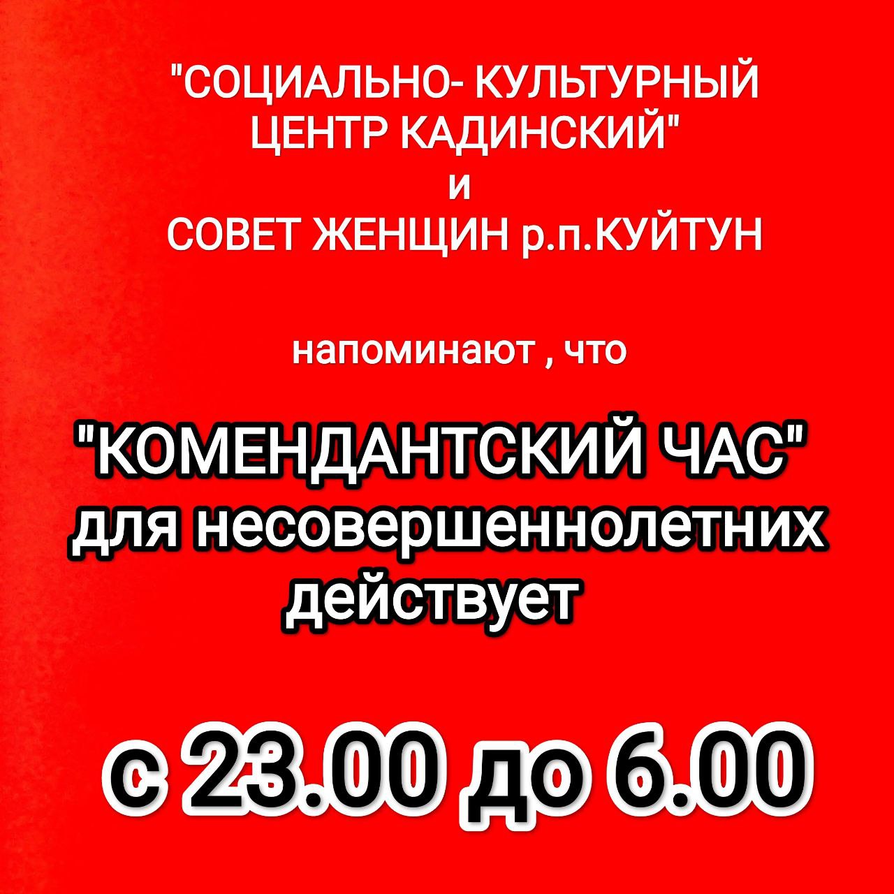 🕚Организаторами рейда в р. п Куйтун 22 июля, на предмет соблюдения подростками и их родителями " комендантского часа" стали: Совет женщин р. п. Куйтун и "СКЦ Кадинский".