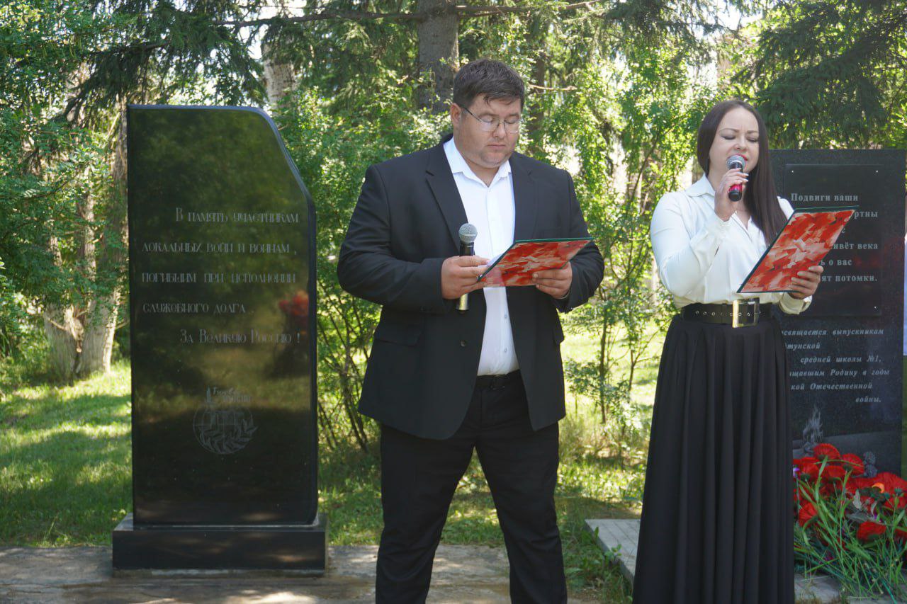 В "Сквере Памяти" собрались ветераны боевых действий, жены и матери участников Cпециальной военной операции клуба "Женское братство", представители власти и общественности, жители поселка.