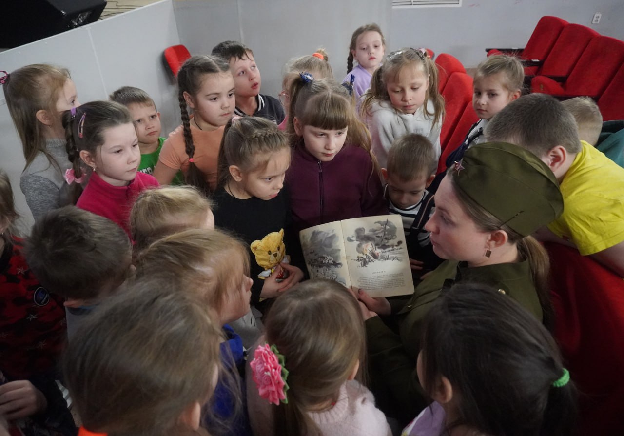 В «Социально-культурном центре Кадинский" в рамках проекта "Связь времён: уроки стойкости и героизма" продолжается ежемесячный кинолекторий "Легенды советского кино", посвященный 80-летию Победы. Очередное мероприятие приняло в гости юных зрителей – воспитанников детских садов поселка Куйтун.